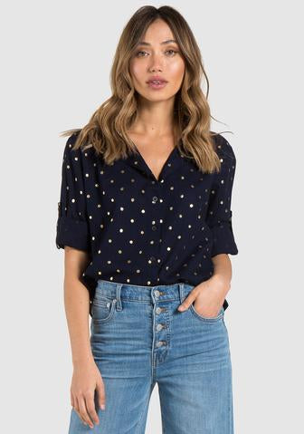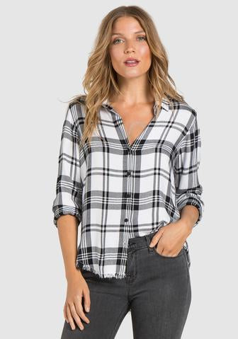 Bella Dahl Button Down Raw Edge Black and white plaid