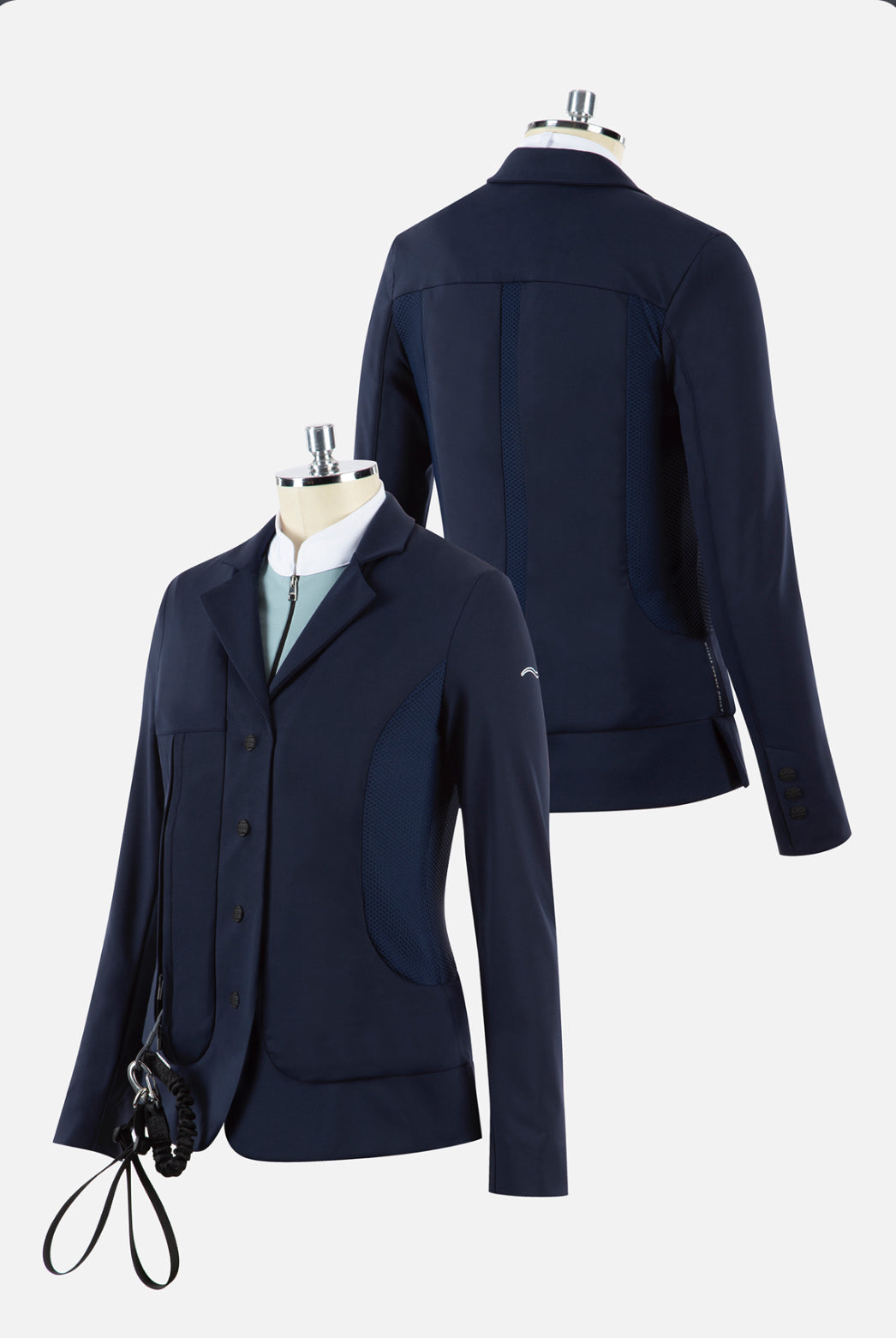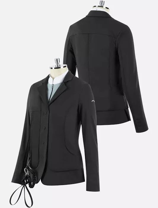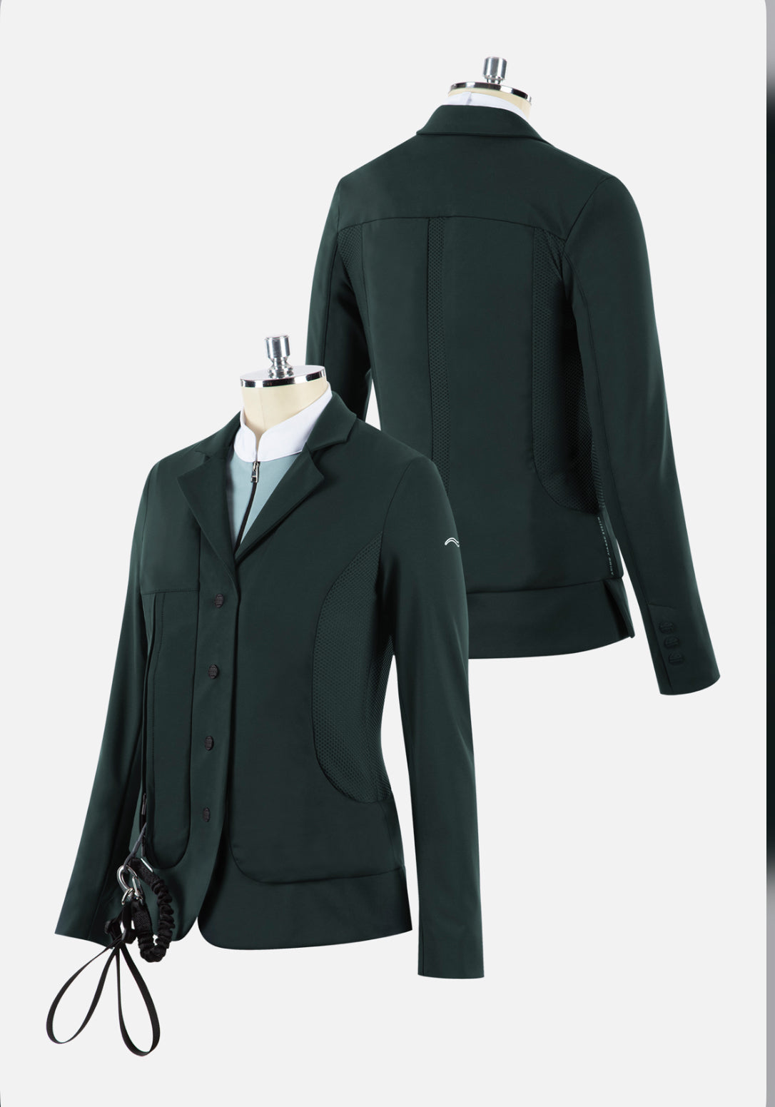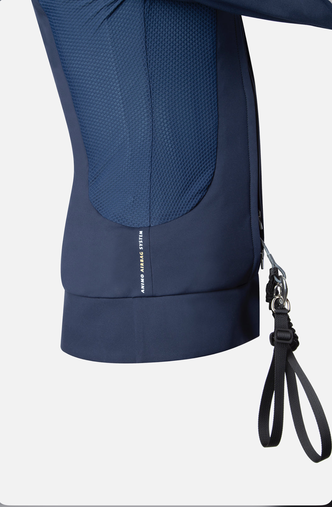 Women’s competition jacket with integrated ANIMO AIRBAG SYSTEM technology. Slim fit. Bi-stretch technical fabric. Front closure with four buttons and self-locking zip. Water-repellent treatment.