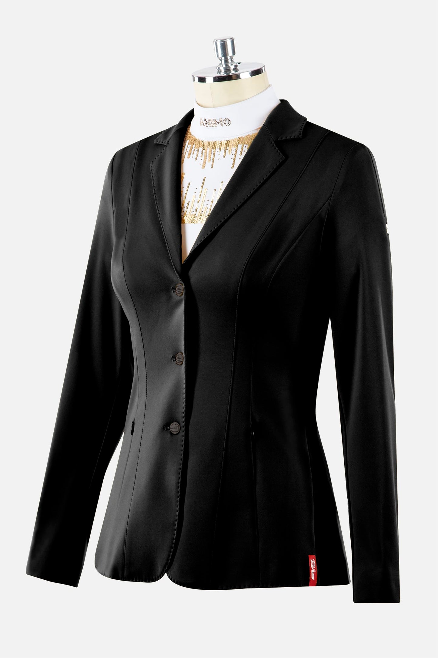 The LUD Women’s Competition Basic Jacket is a versatile piece designed for elegance and performance. Featuring a personalised Animo lining and crafted from bi-stretch technical fabric, this jacket is both elastic and resilient, while remaining extremely light. The water-repellent treatment adds to its functionality, making it ideal for all-weather competitions.