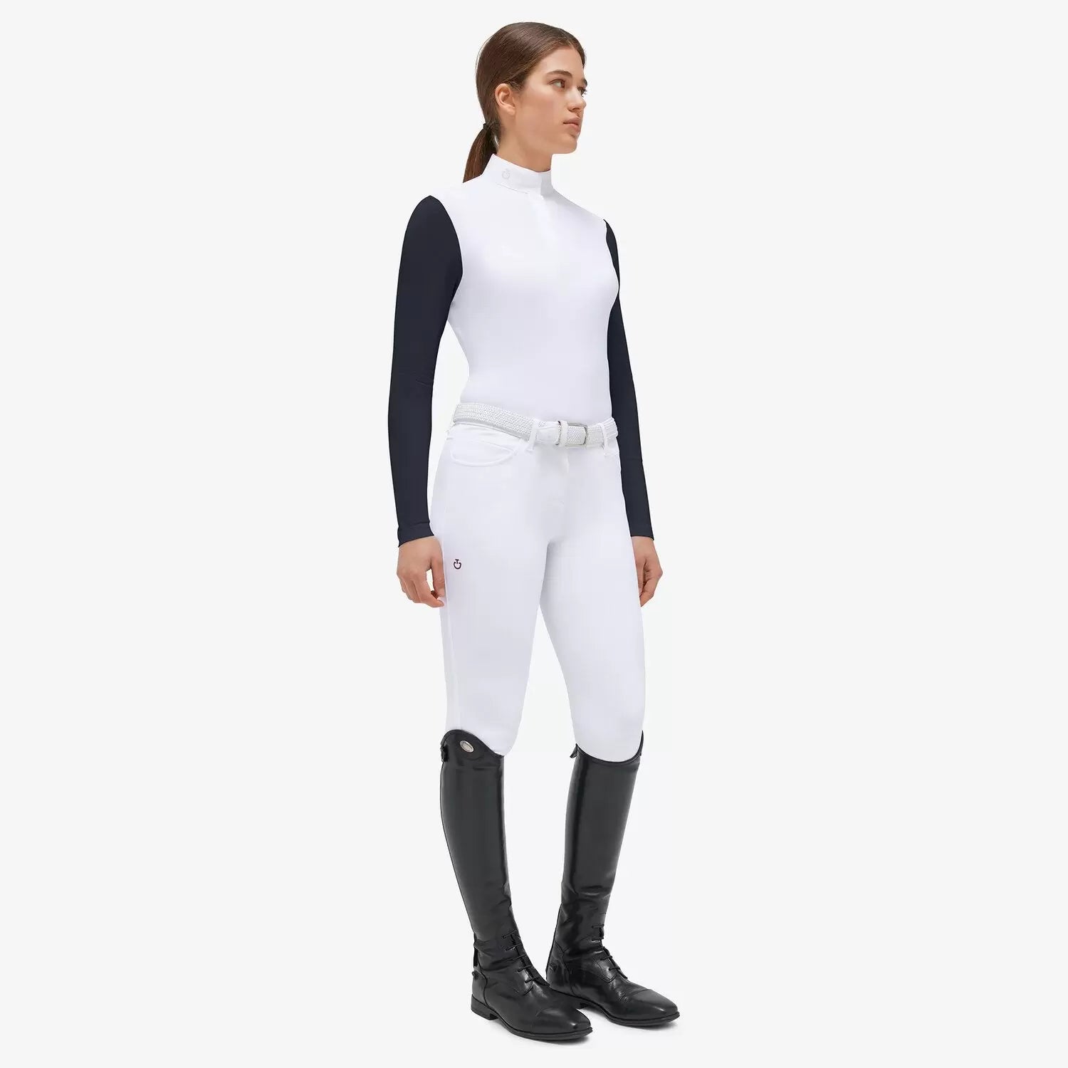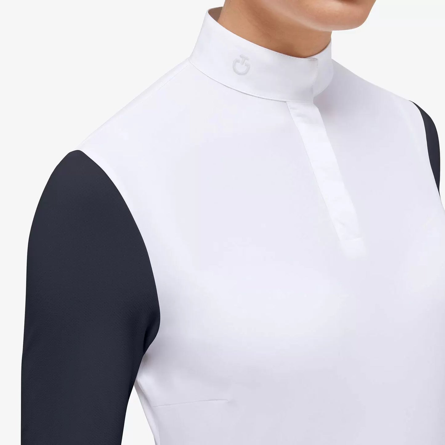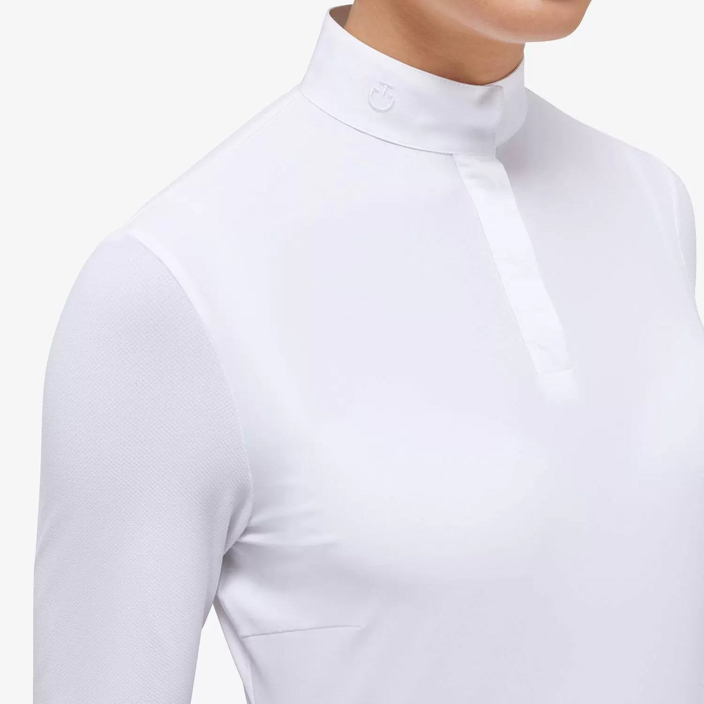 Step into the field with style and confidence in the CT Jersey Mesh Long-sleeved Competition Polo. This garment combines the lightness and breathability of Jersey Mesh with the convenience of long sleeves, making it the perfect choice for competition days. The collar is crafted from high-quality white poplin, and discreetly hidden snaps and front buttons in white add a touch of elegance. The delicately embroidered CT logo on the collar represents our commitment to authenticity and passion for our brand. With this polo shirt, you'll be well-prepared to excel in any competition without compromising on comfort and style.