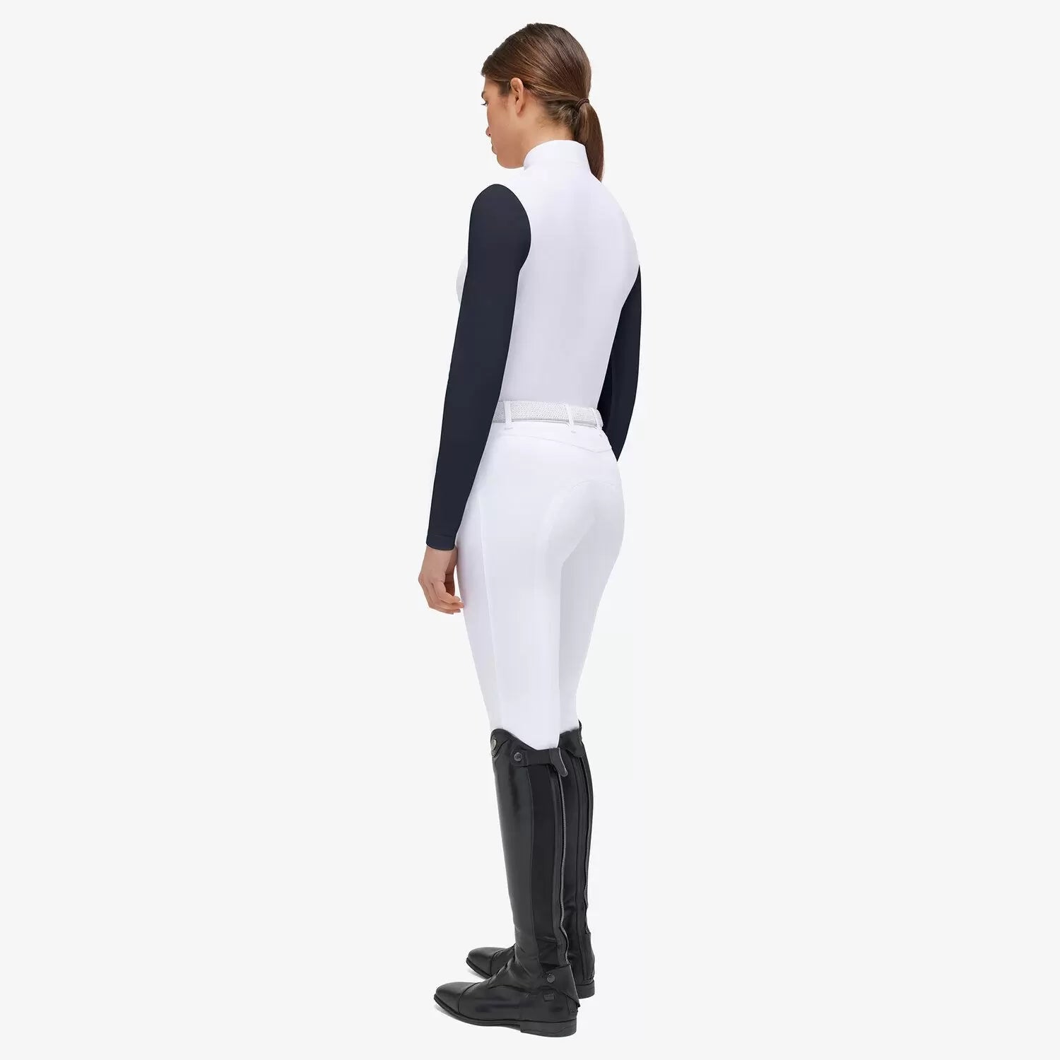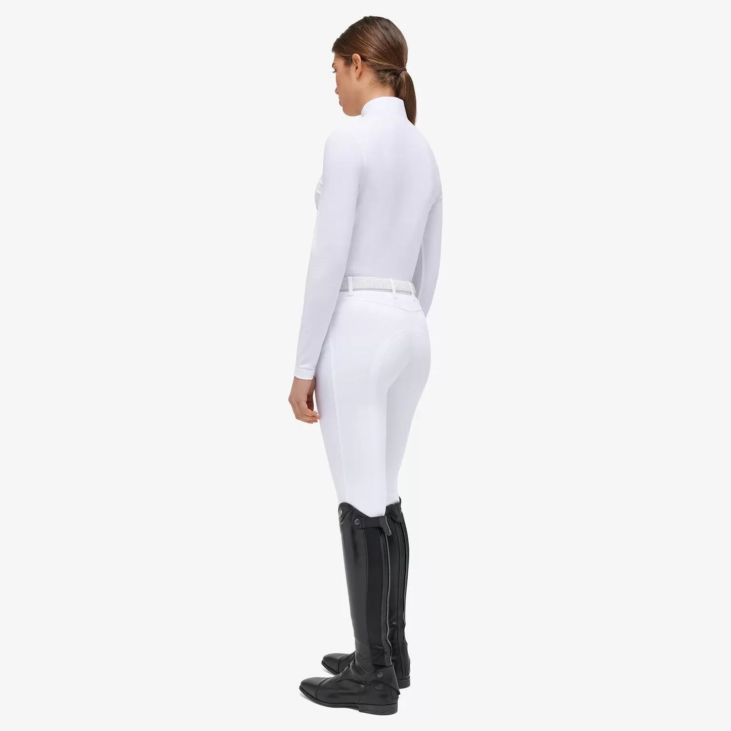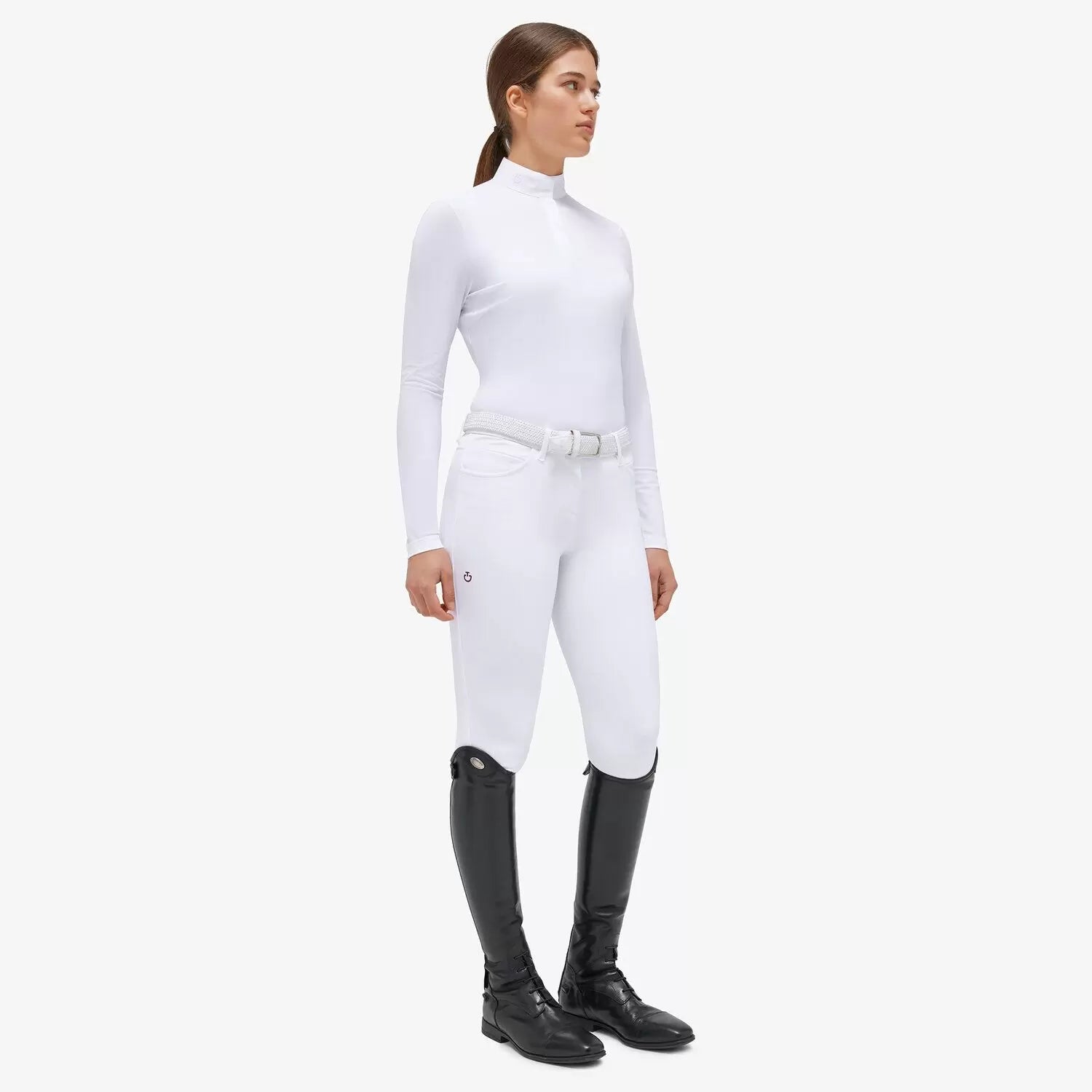 Step into the field with style and confidence in the CT Jersey Mesh Long-sleeved Competition Polo. This garment combines the lightness and breathability of Jersey Mesh with the convenience of long sleeves, making it the perfect choice for competition days. The collar is crafted from high-quality white poplin, and discreetly hidden snaps and front buttons in white add a touch of elegance. The delicately embroidered CT logo on the collar represents our commitment to authenticity and passion for our brand. With this polo shirt, you'll be well-prepared to excel in any competition without compromising on comfort and style.