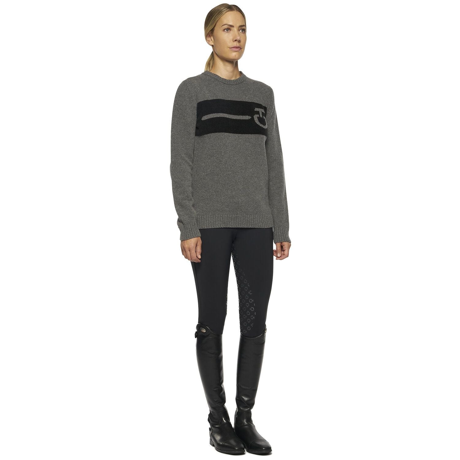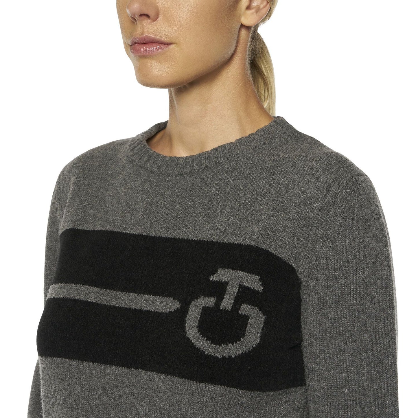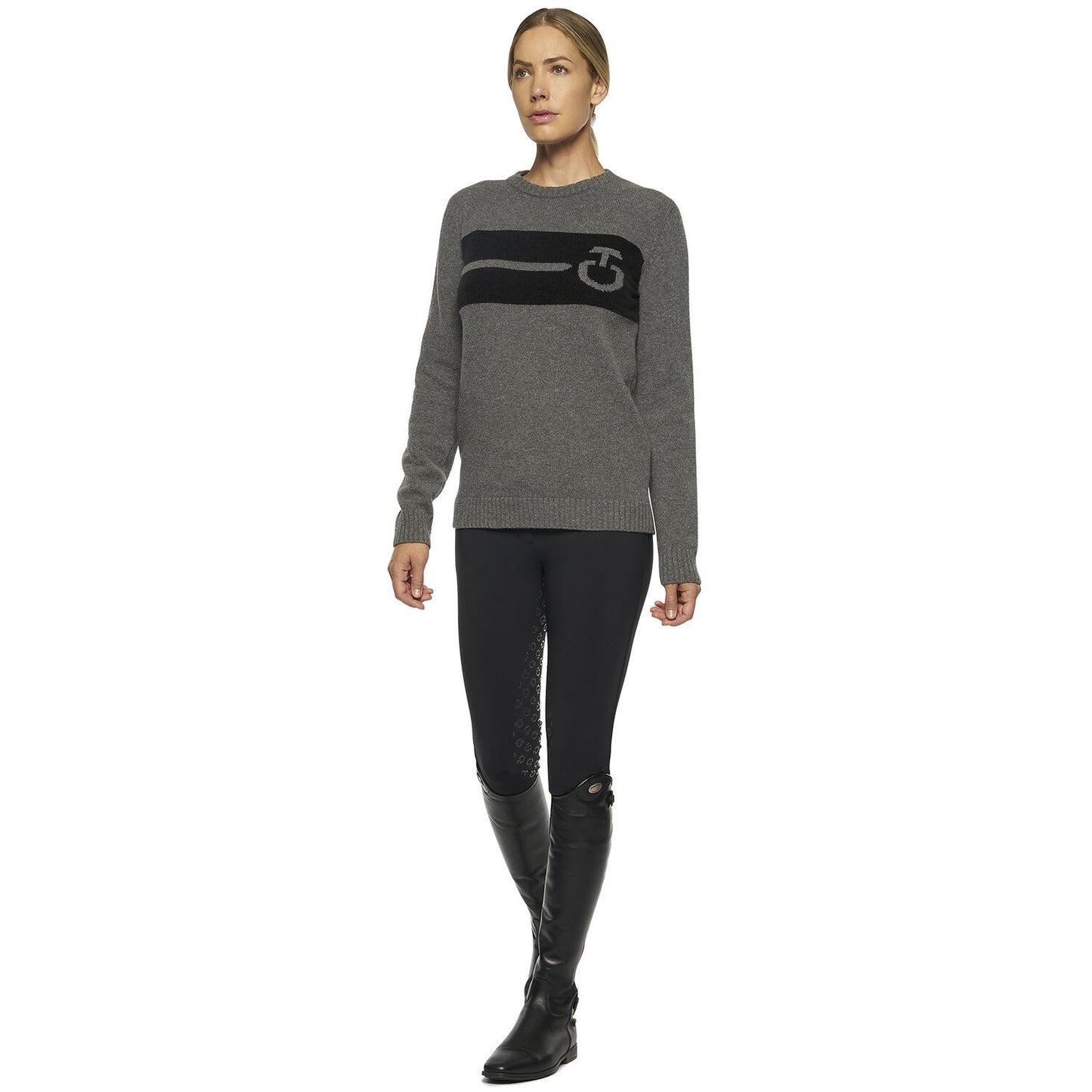 "This women's sweater is made of soft and warm wool, which is ideal for training sessions and everyday life. This sweater has an embroidered Cavalleria Toscana logo on the chest
