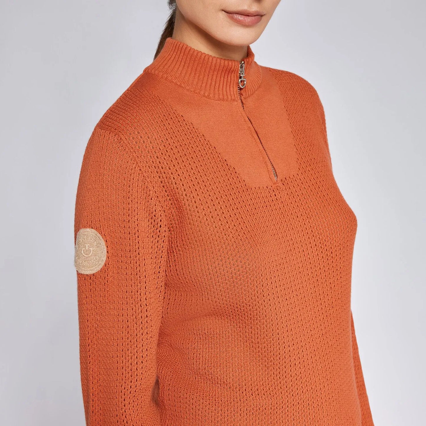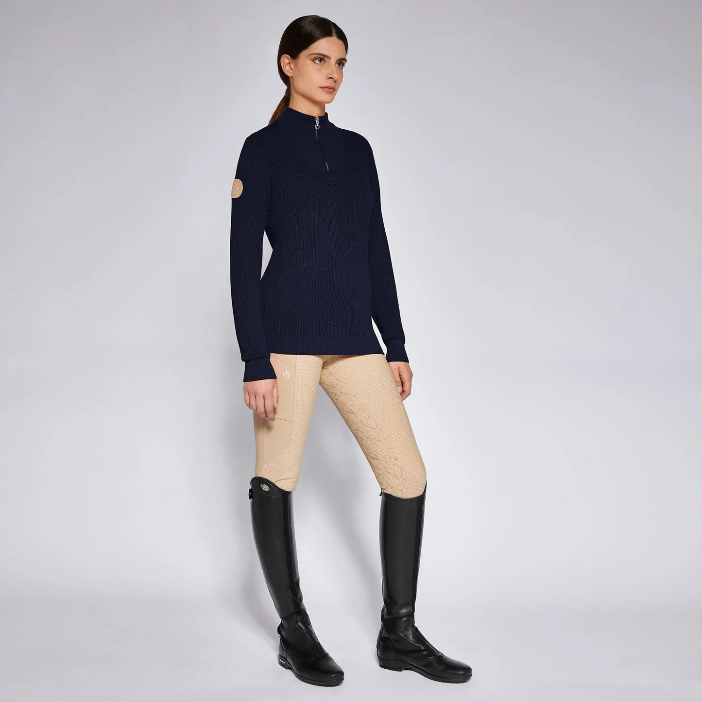 This women's cotton sweater is perfect for those in search of a comfortable and versatile garment. The added zip enhances both practicality and style, making it an ideal choice for a dynamic everyday look. Crafted from high-quality cotton, the sweater guarantees softness and durability, catering to both casual outfits and more refined ensembles. Its lightweight design makes it well-suited for spring days or cool summer evenings, striking a perfect balance between elegance and comfort.