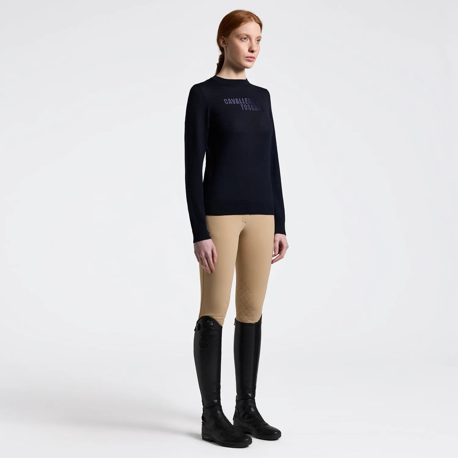 The Cavalleria Toscana women's crew neck sweater, made from 100% merino wool, combines elegance and comfort, making it perfect for cooler days. The fine wool craftsmanship ensures softness and warmth, while the design is enhanced by the CT logo embroidered with fringes, adding a unique and sophisticated touch. The elasticated cuffs and hem guarantee an optimal fit, ideal for leisure or completing a casual-chic look with style.