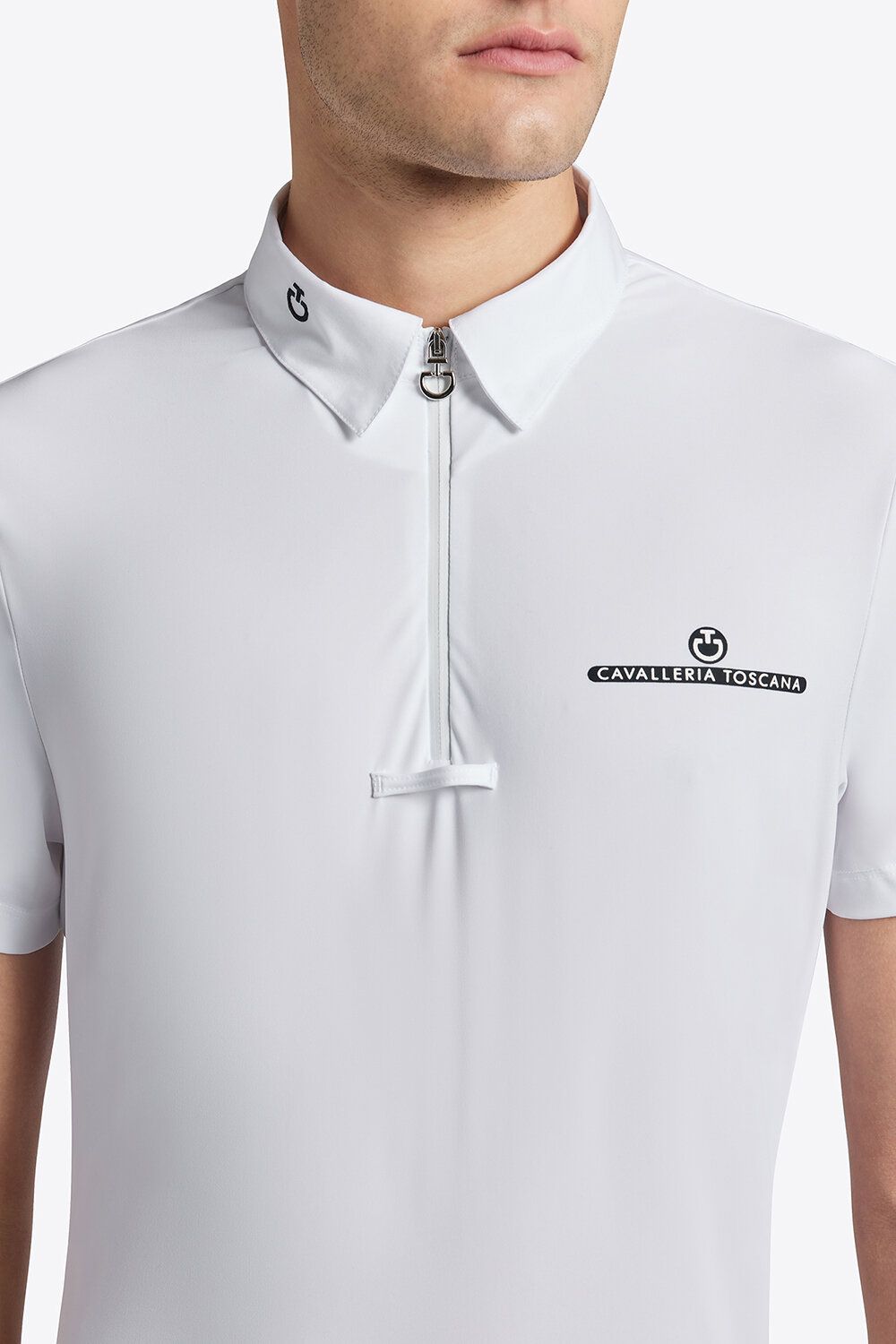 Cavalleria Toscana Men's Short Sleeve Technical Competition Shirt with Zip and Embossed Logos