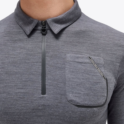 Cavalleria Toscana Men's Tech Wool Half Zip L/S Training Polo w/pocket