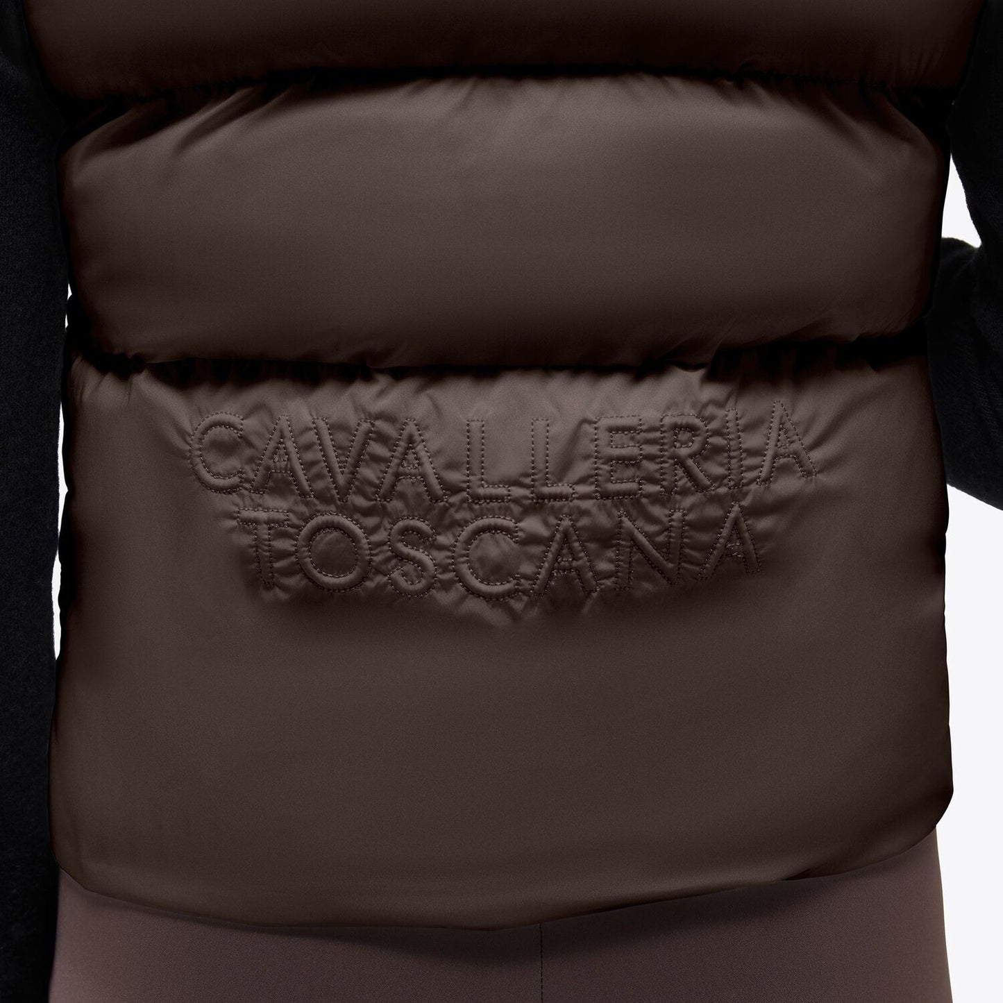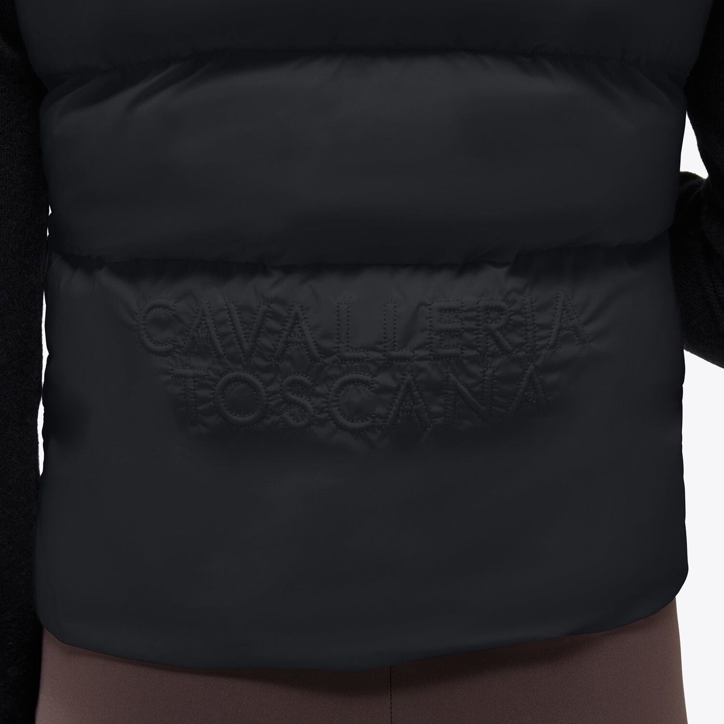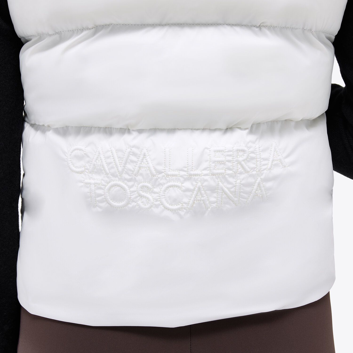 Elevate your casual style with this feminine sleeveless down jacket. The embroidery detail on the back adds a touch of sophistication, while the lightweight fabric ensures comfort and freedom of movement. The Cavalleria Toscana logo is discreetly placed, emphasizing the garment's timeless elegance.