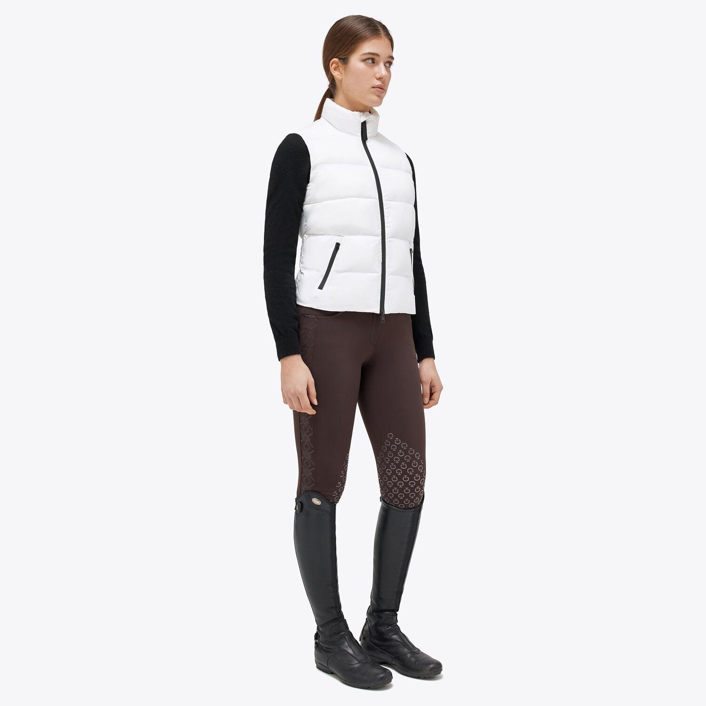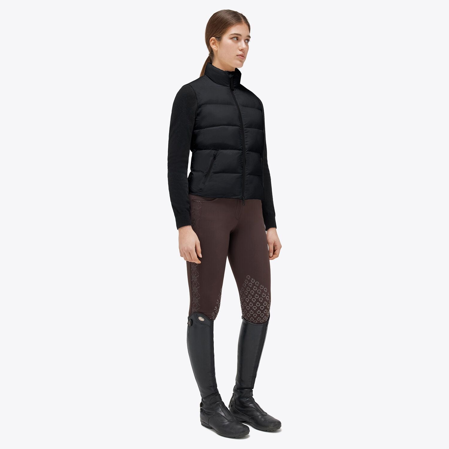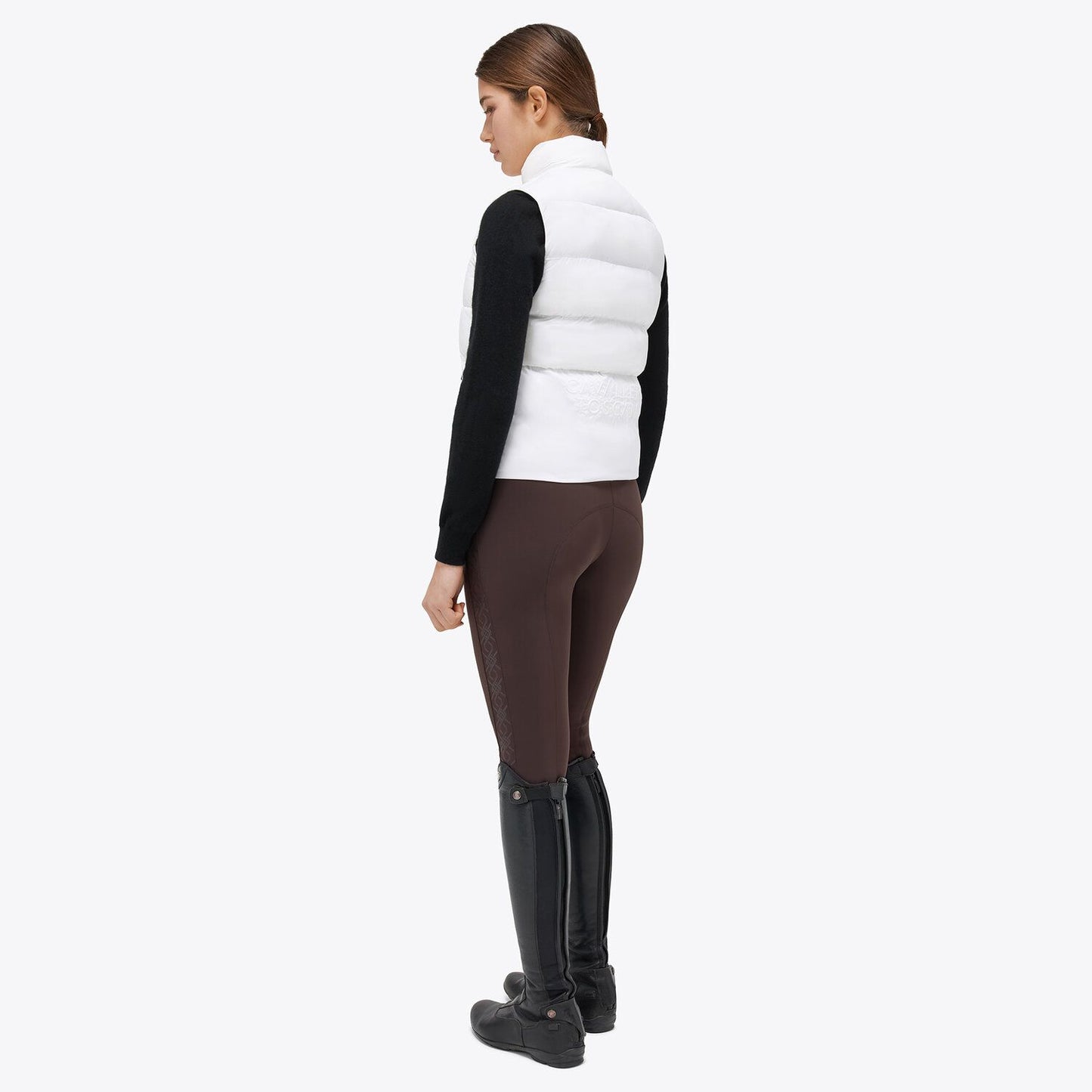 Elevate your casual style with this feminine sleeveless down jacket. The embroidery detail on the back adds a touch of sophistication, while the lightweight fabric ensures comfort and freedom of movement. The Cavalleria Toscana logo is discreetly placed, emphasizing the garment's timeless elegance.