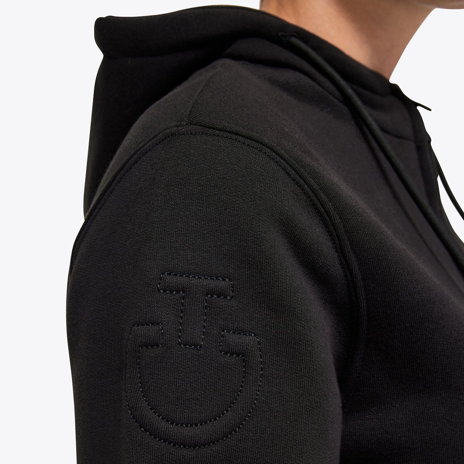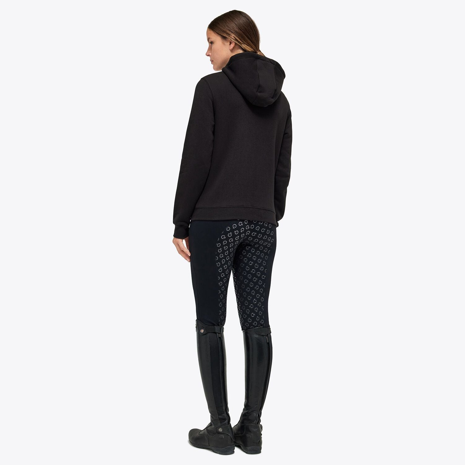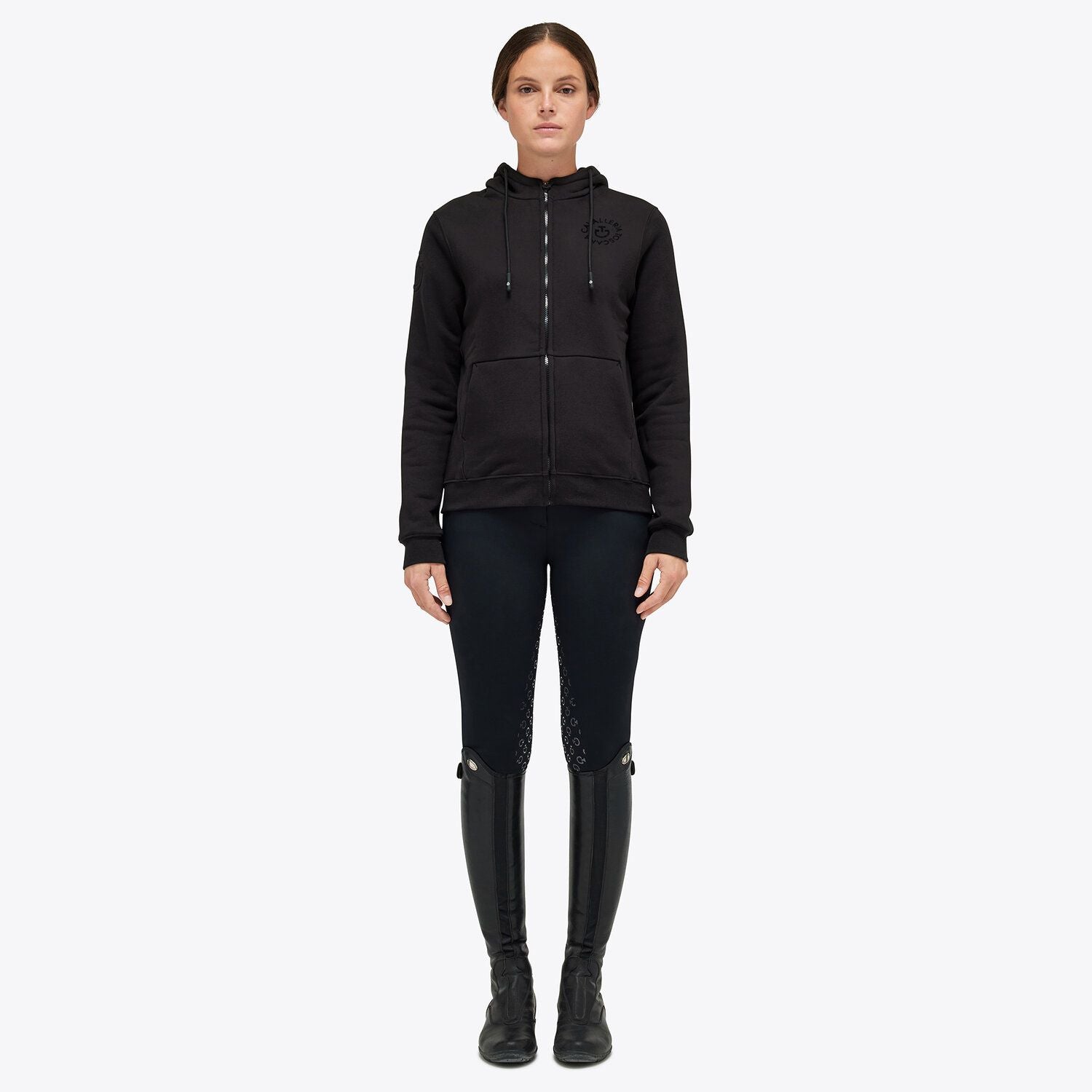 This comfortable hoodie is perfect layered over t-shirts and other tops when riding and at the stables, or simply as everyday wear. The versatile, practical cut features a convenient adjustable hood, roomy pouch pockets and a full zip trimmed by a logo puller. The contrast Cavalleria Toscana detail on the chest and CT embroidery on the sleeve symbolize the brand’s unmistakable style.