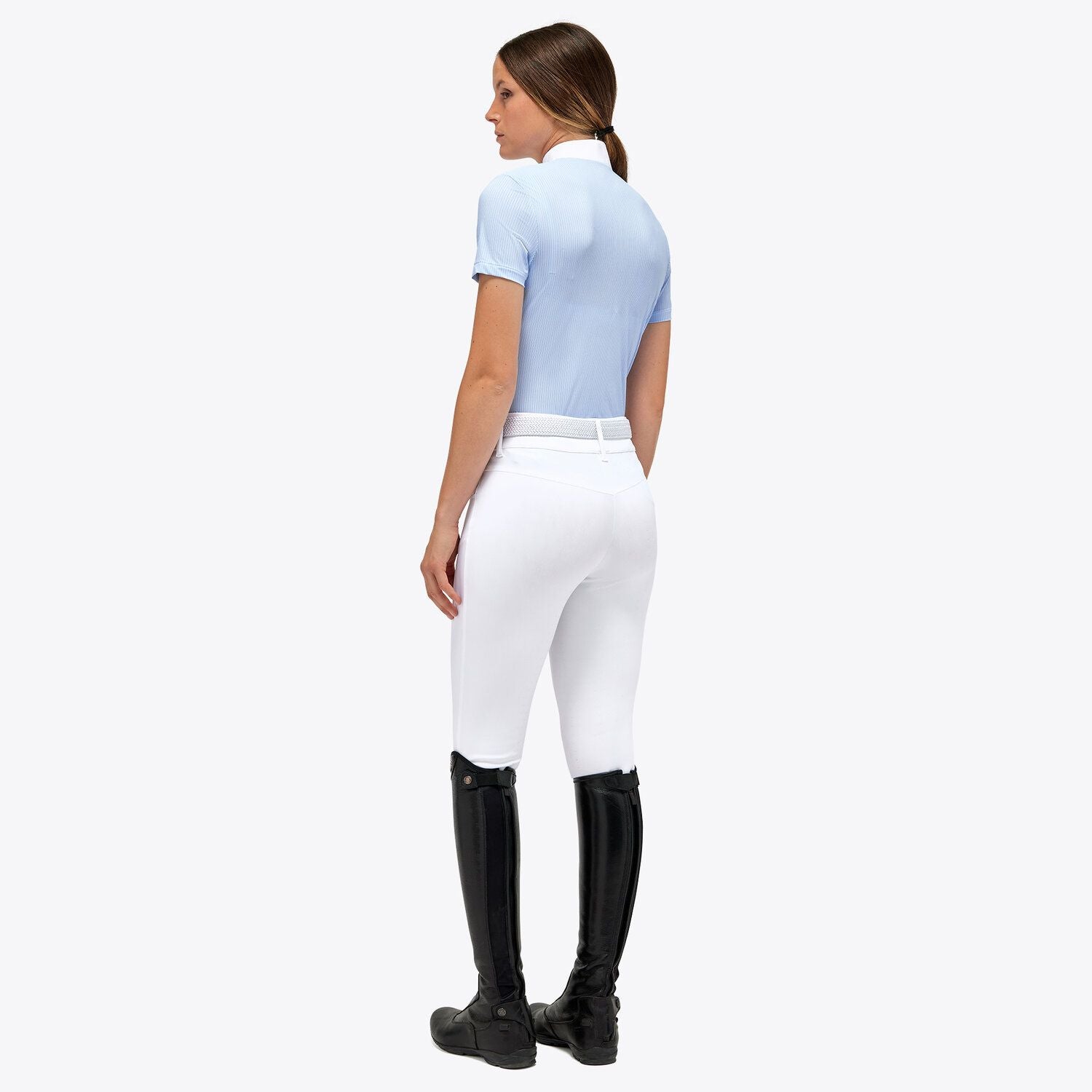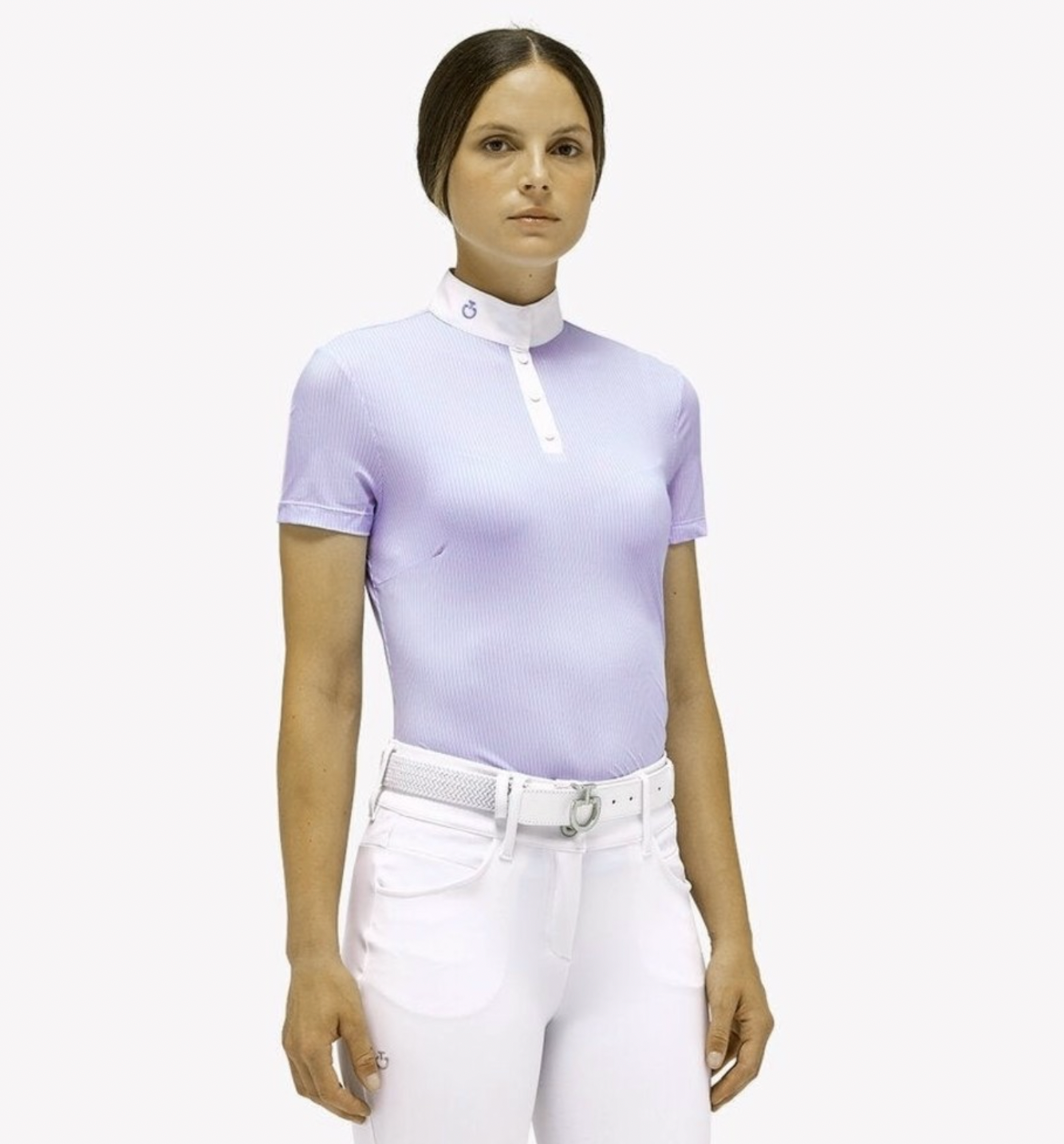 The Cavalleria Toscana Jersey Printed Button Up Competition Polo is the perfect choice for equestrian enthusiasts looking for a comfortable and functional garment. Crafted from piqué and technical knit, this polo comes in a variety of spring pastel colors. Thanks to its bi-stretch technology, it is easily adaptable to body movements, while its easy care composition makes it easy to wash and maintain. Furthermore, this polo shirt is breathable and fast-drying, ensuring optimal comfort and performance on the saddle.