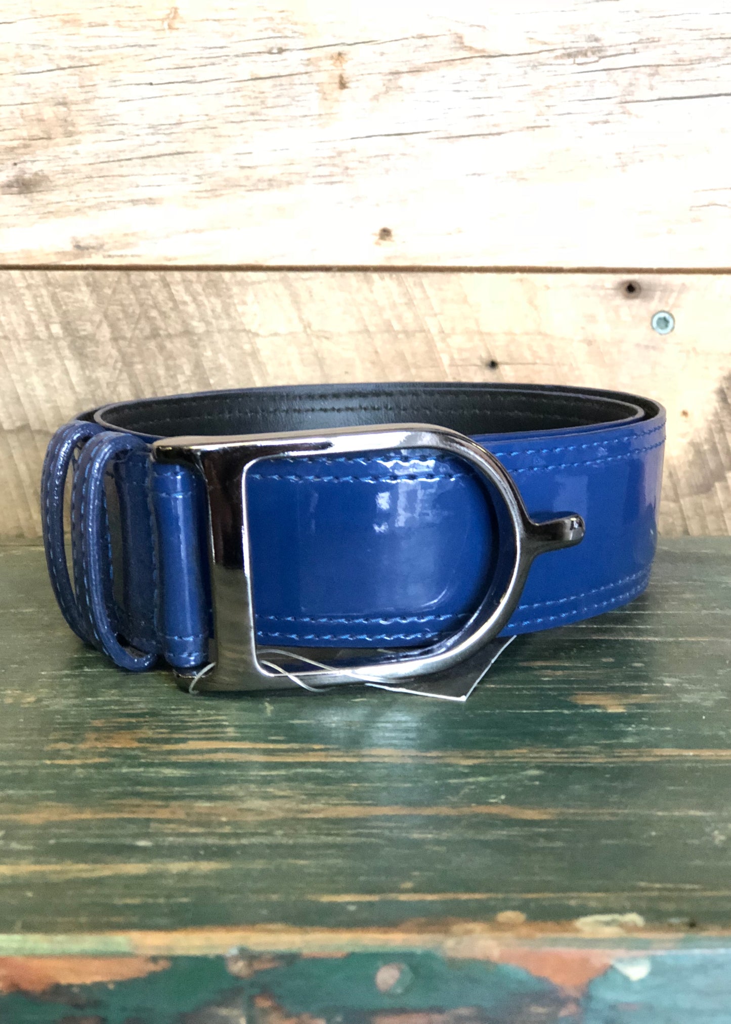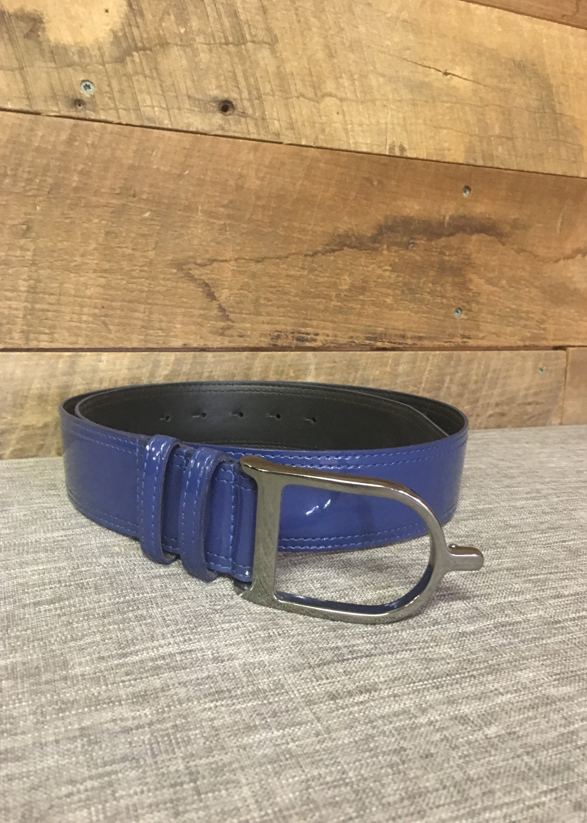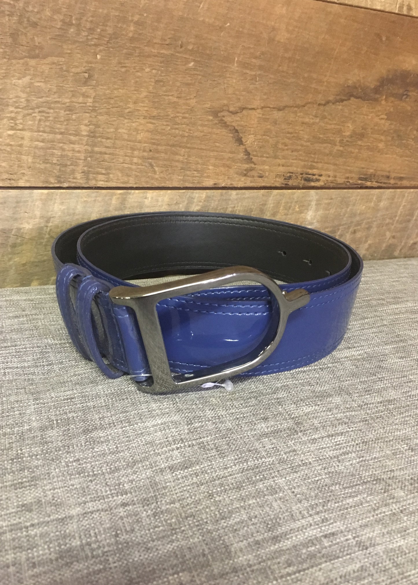 Duftler Spur Belt Gunmetal Buckle Cobalt Patent