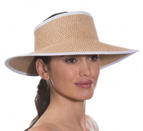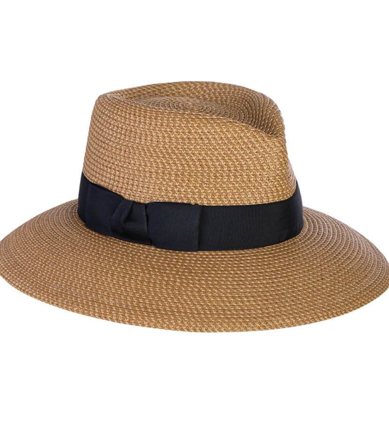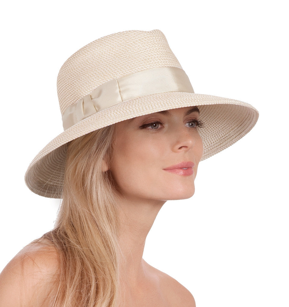A classic fedora silhouette in Squishee® straw, banded in contrast stripes which add surface interest for a striking effect. Elasticized inner band fits most. Lightweight and packable. Blocks 95% UVA/UVB rays. Look your best while you enjoy the sun! Independent testing in accordance with AATCC (American Association of Textile Chemists and Colorists) test methods have determined this product's effectiveness for blocking ultraviolet radiation as well as UVA/UVB radiation. This product was awarded the highest rating of 50+ UPF by independent testing. To learn more about AATCC testing, go to www.aatcc.org. Note: Due to the ventilation weave of this item, tiny areas may provide less than 50+ UPF.
