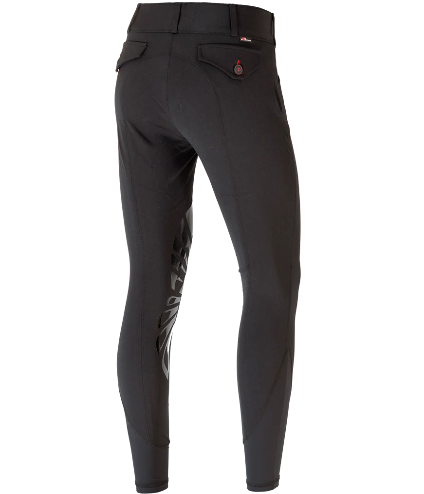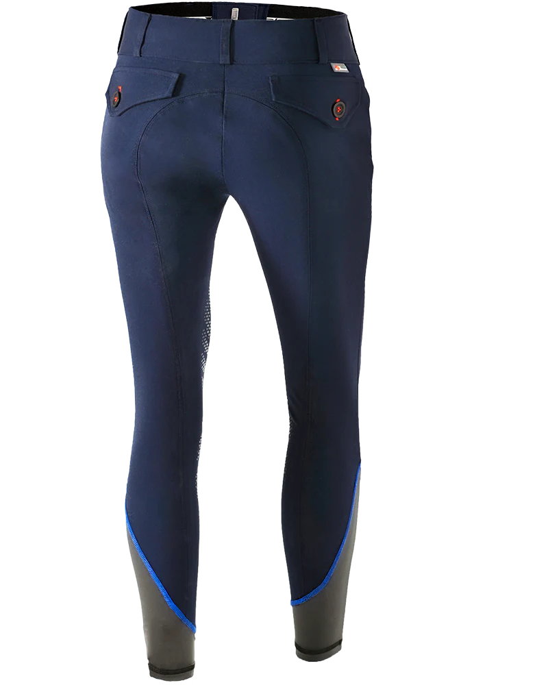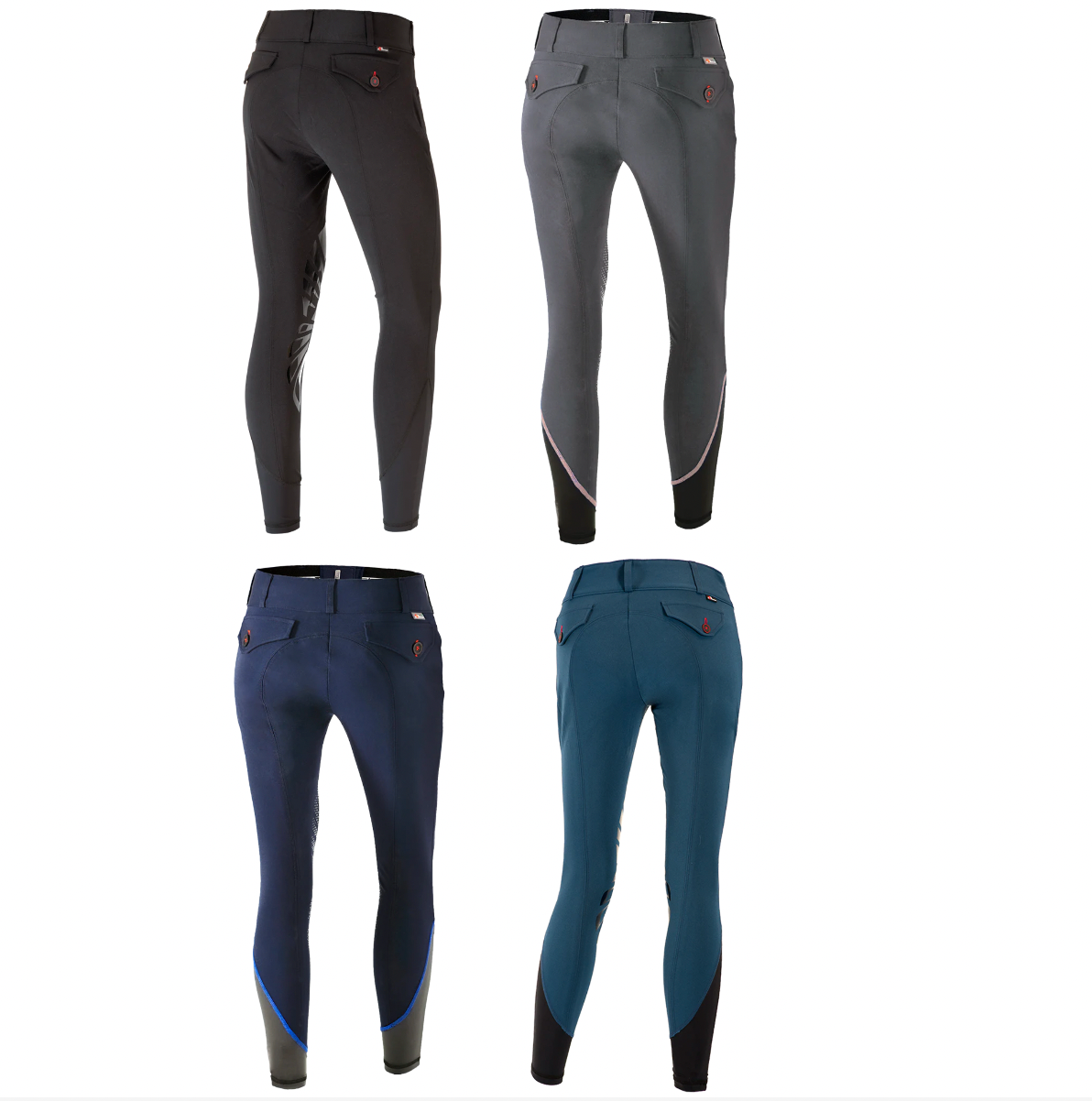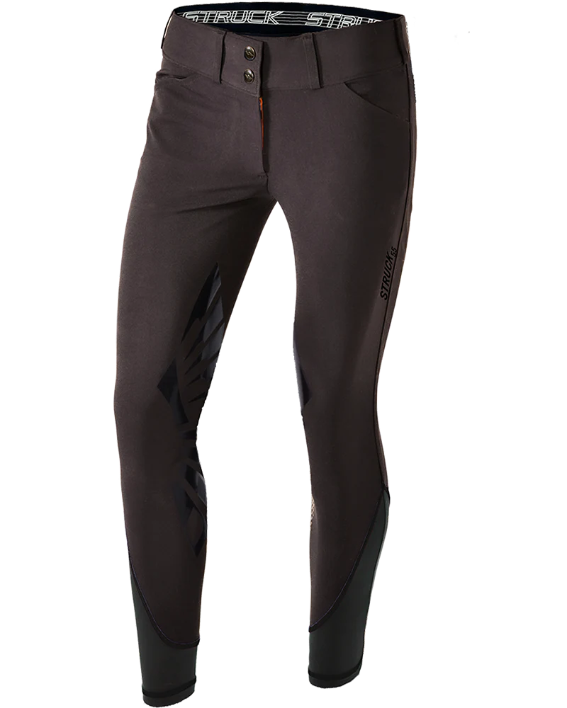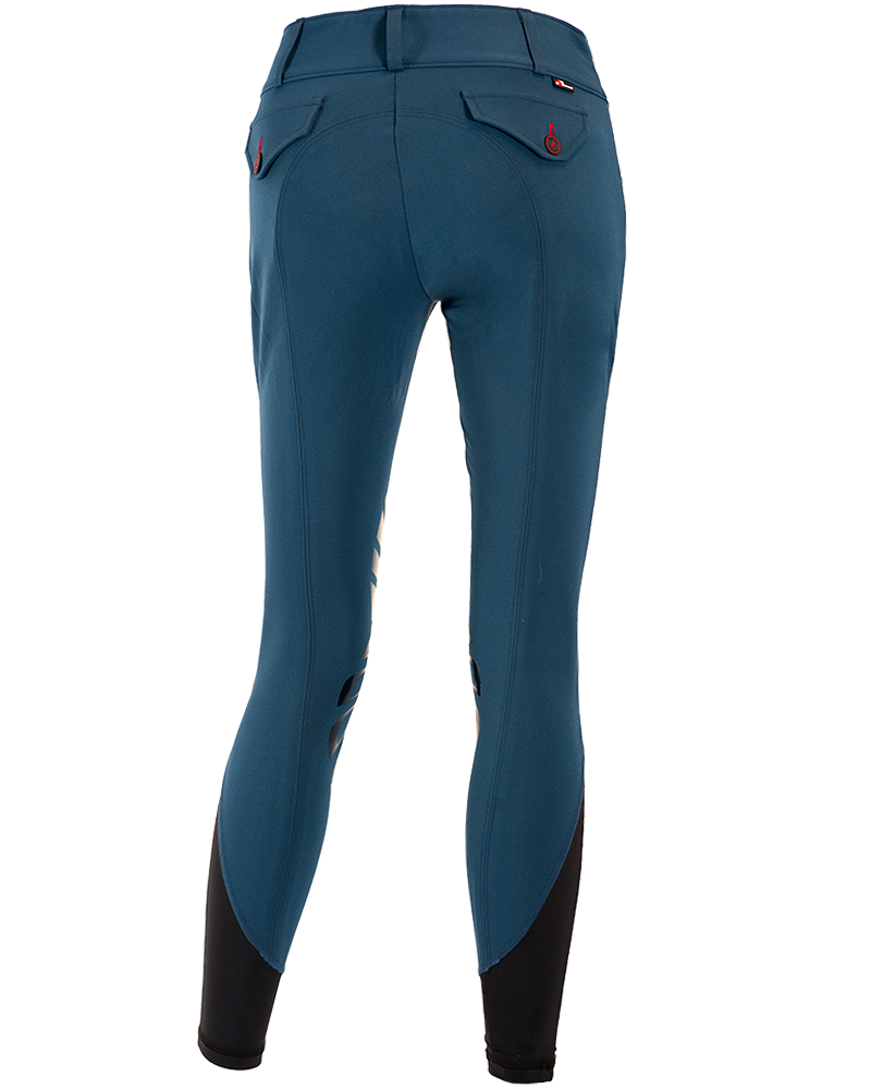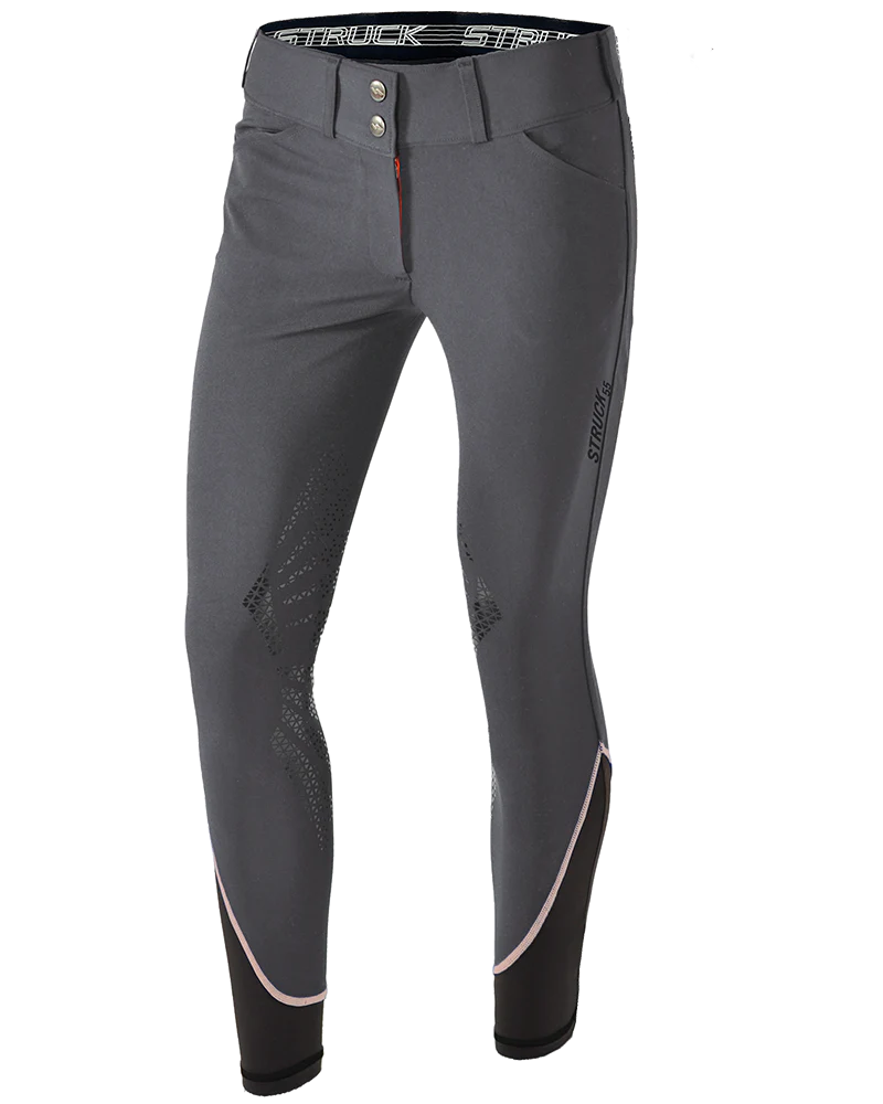 The flattering low-mid rise with custom waistband is super figure flattering, designed to keep shirts tucked-in and eliminate gapping. Our soft stretchable lower leg cuff creates a smooth and comfortable fit under your boots. Finished with our signature red sport-lock zipper, and grip knee patch system.
