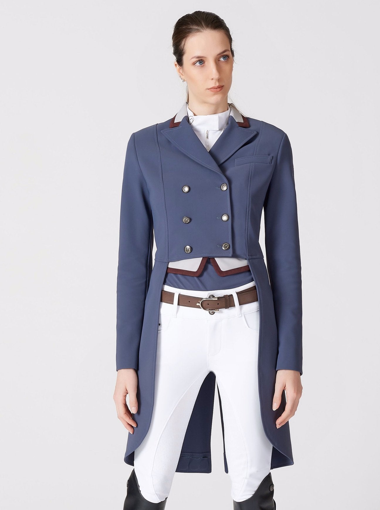 Among women’s competition jackets, here you are the precious Costanza. As a classical frac, this tailcoat is specifically designed for dressage competitions. The doubled and almost indestructible fabrics gently second every movement, still mantaining a perfect shape. It also has some weights on the bottom of the tail, to keep it smoothly extended while racing. Six buttons to fasten the double-breasted model, three buttons on the cuffs.