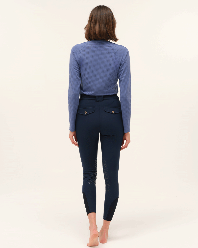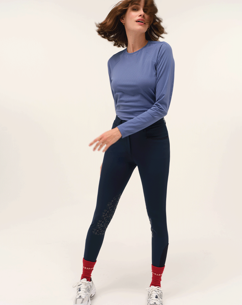 Technical long-sleeved T-shirt, designed for demanding riders. With its micro-perforated and eco-responsible Italian fabric, it offers excellent breathability, UV protection (UPF 50+) and optimal comfort in movement. Its fitted cut, round neck and sleek design make it an elegant and functional choice, perfect for your horse training sessions.