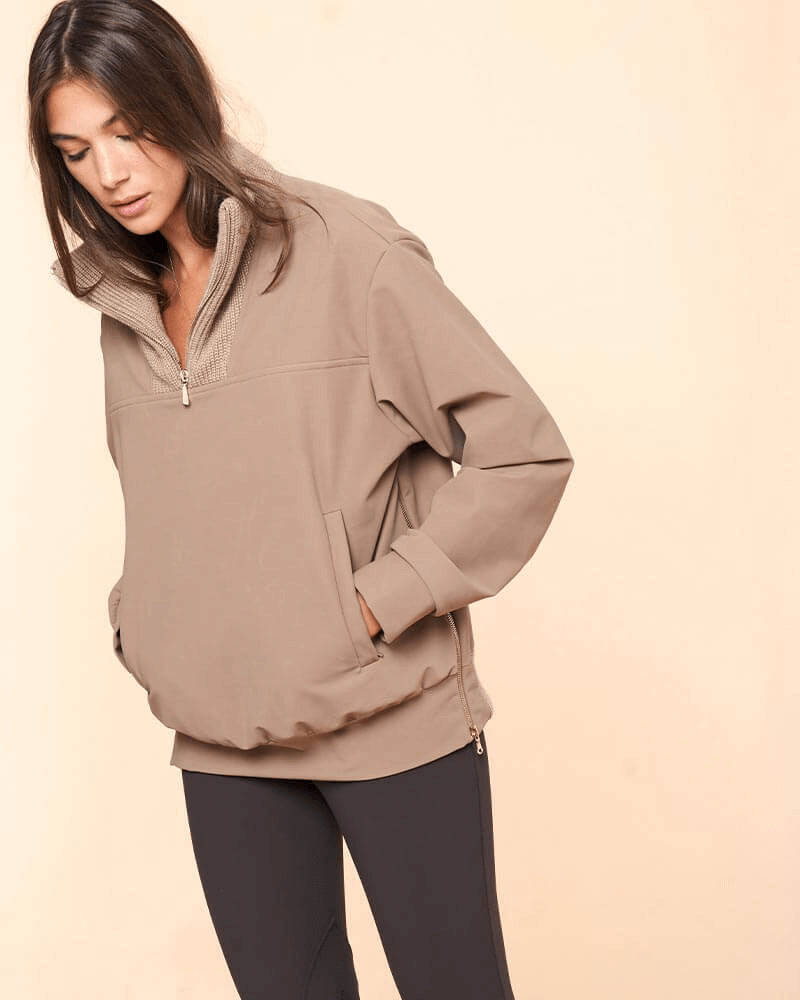 - Vertical kangaroo pockets: with piping, lined with brushed fleece and fitted with invisible zippers.