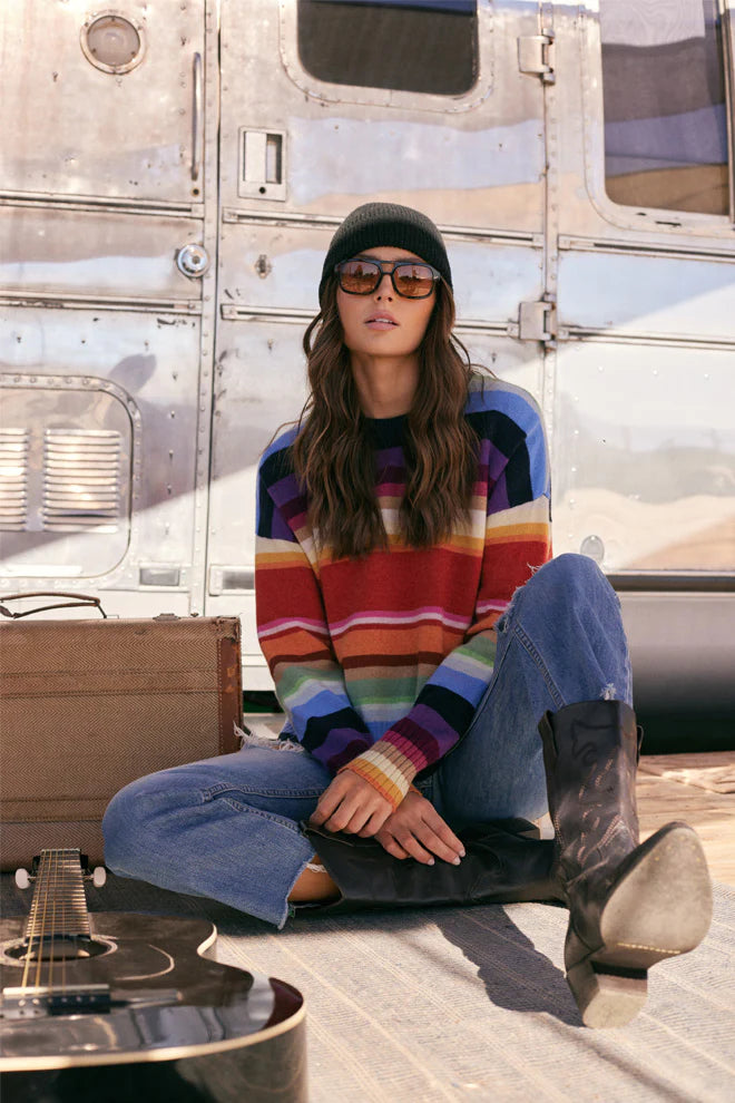 Minnie Rose Cashmere Multi Stripe Oversize Crew