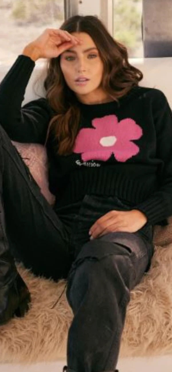 Minnie Rose classic crew featuring a poppy flower print design.