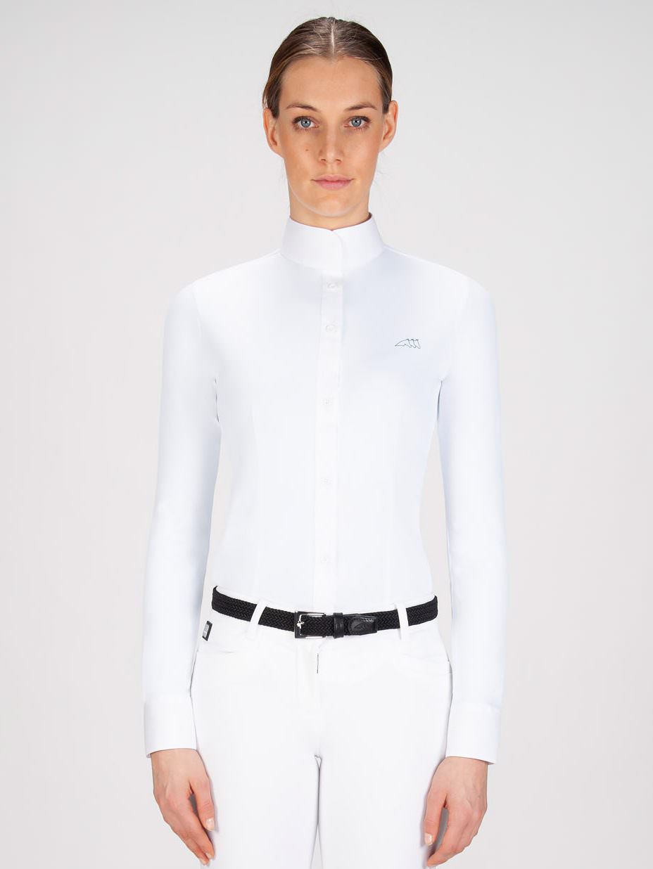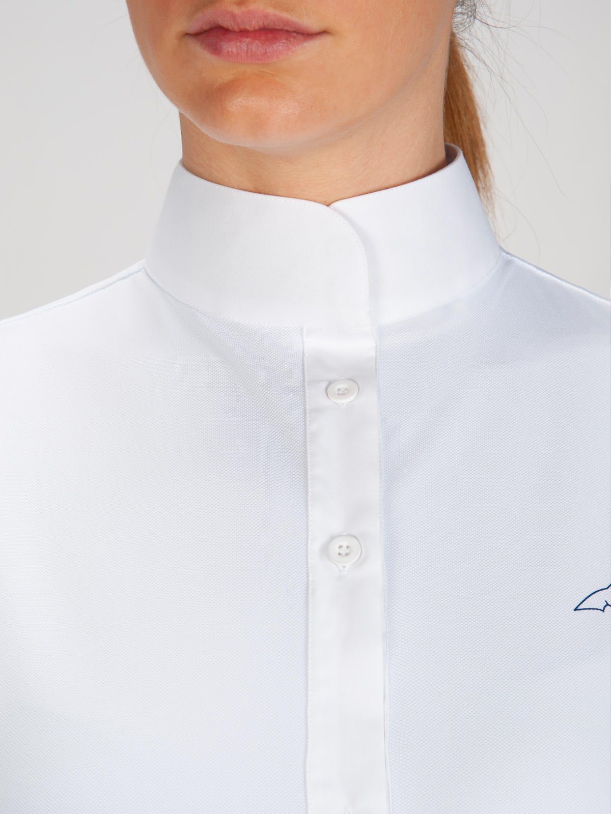The Victoria adds innovative technology to the classic long-sleeve women’s white show shirt for hunters. Breathable and with 4-way stretch, the Victoria shirt features a tailored fit with true cuffs and Equiline’s X-Premium fabric, which is elasticized and fast-drying, allowing for enhanced comfort during performance.