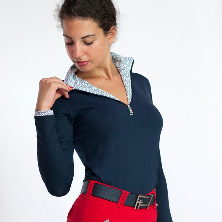GIOCONDA is a silky soft long sleeve sun shirt, with patterned inserts and zip, a must-have item for all equestrians. With extra comfort, breathability and high UV protection, Gioconda is the ideal schooling and every day riding shirt.
