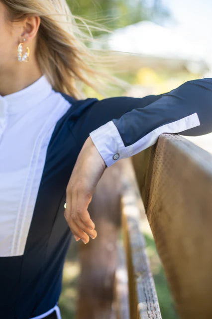 Women's long-sleeve Navy competition polo for all competition rings.
