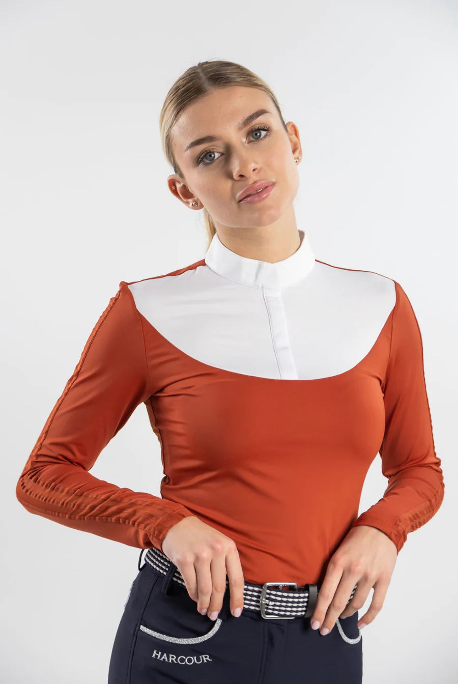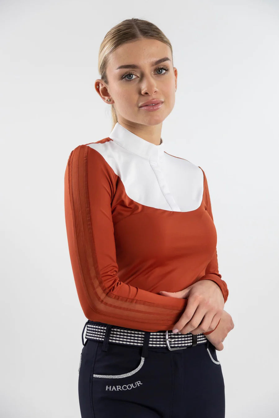 Women's long sleeve competition shirt. Light, stretchy fabric provides style and comfort for the athlete.