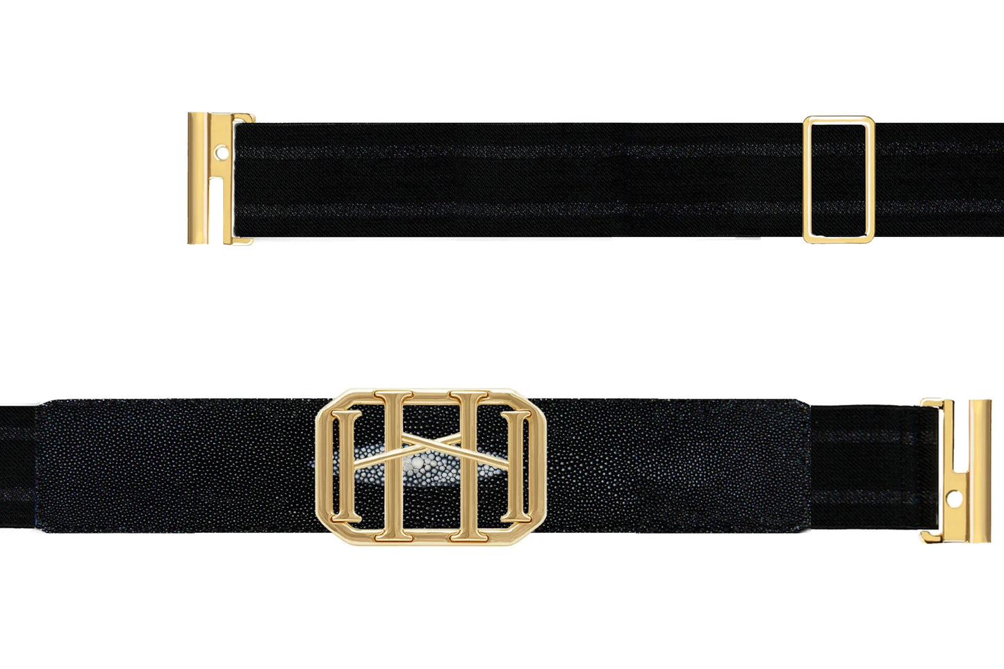 Heureux XII Icon Equestrian Belt - Gold Classic Black Stingray w Black Metallic Stripe Elastic