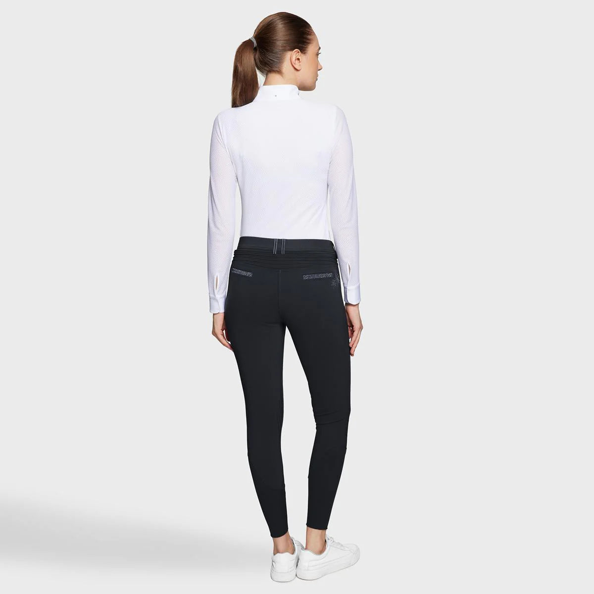 New spring/summer 2025 colorsSamshield's most popular breech, the Adele/Diane Breeches are made from high stretch, extra comfortable Italian fabric that provides a second skin feel for the rider with exceptional freedom of movement whilst a six layer grip provides excellent stability in the saddle. Body temperature regulating technology wicks moisture away and keeps the skin dry. The stunning embroidery and Swarovski detailing really is the highlight of these breeches, adding style and elegance. These breeches are also EPD Certified, making them environmentally friendly. Additional features include a hidden phone pocket, compressive calf area for increased blood flow and muscle support and an inner elastic panel on the waistband to keep your shirt in place. Easy care, machine washable at 30'C Composition Fabric 1: 72%PA/28%EA Composition Fabric 2: 59%PA/41%EA