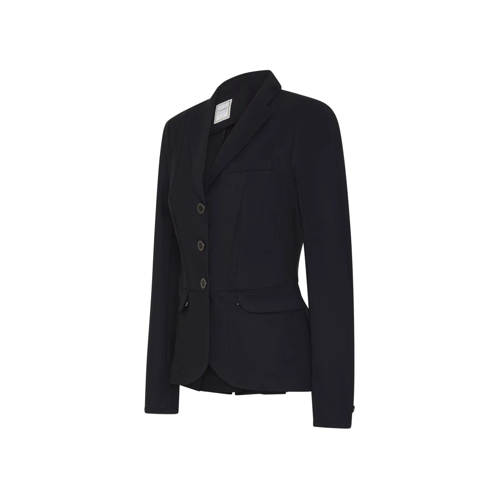The Victory Air competition jacket is a lightweight, unlined jacket that combines functionality with elegance and style. Delicate leaf perforation along the side panels offer a subtle, sophisticated finish. The fasbric is high stretch, breathable and offers sun blocking properties to protect both the wearer and the fabric quality. Machine washable at 30'C and is made with EPD Certification, making it environmentally friendly.