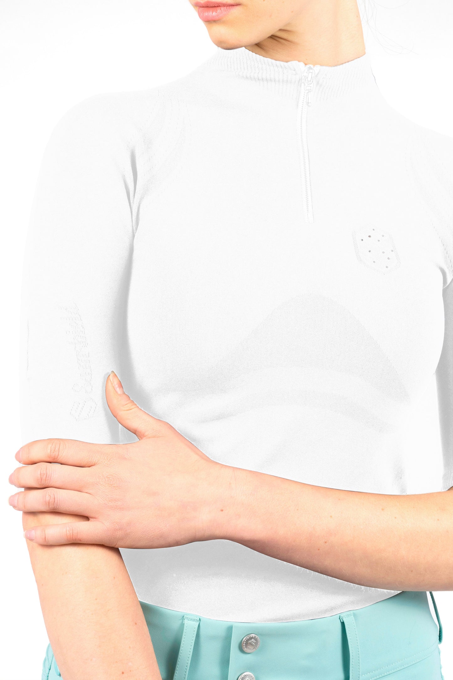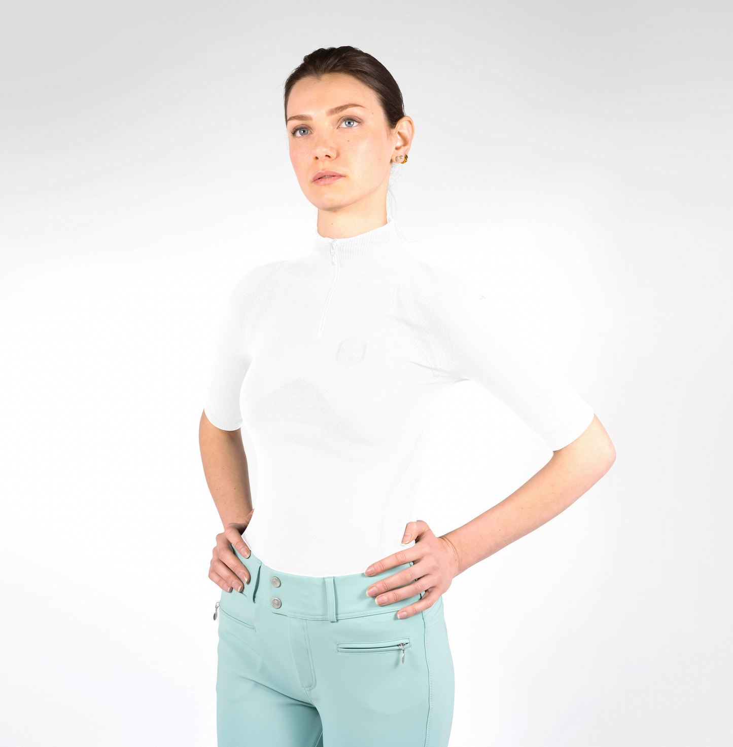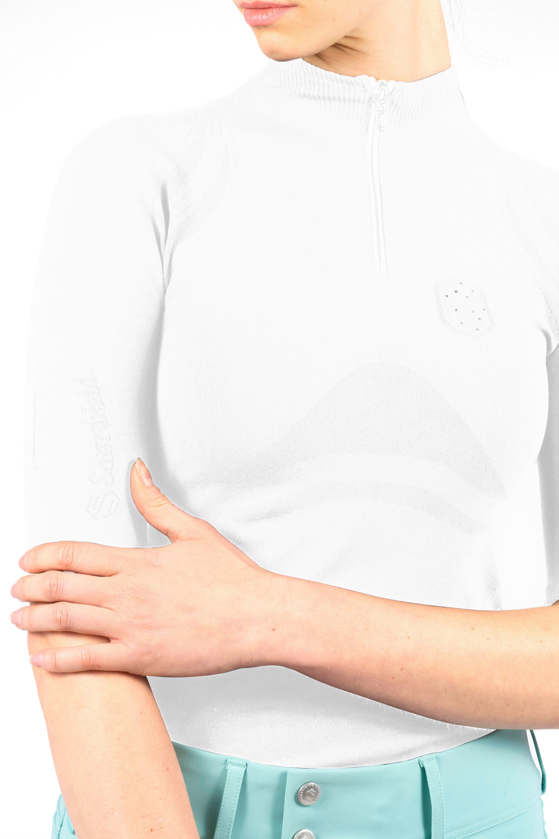 The Alice women's shirt is a flattering seamless, technical piece, perfect for training. The lofted fibres within the material allow for enhanced breathability whilst maintaining a good temperature to support the rider. The high stretch, extra comfortable fabric is quick drying with wearability resistance, making it durable and long lasting.