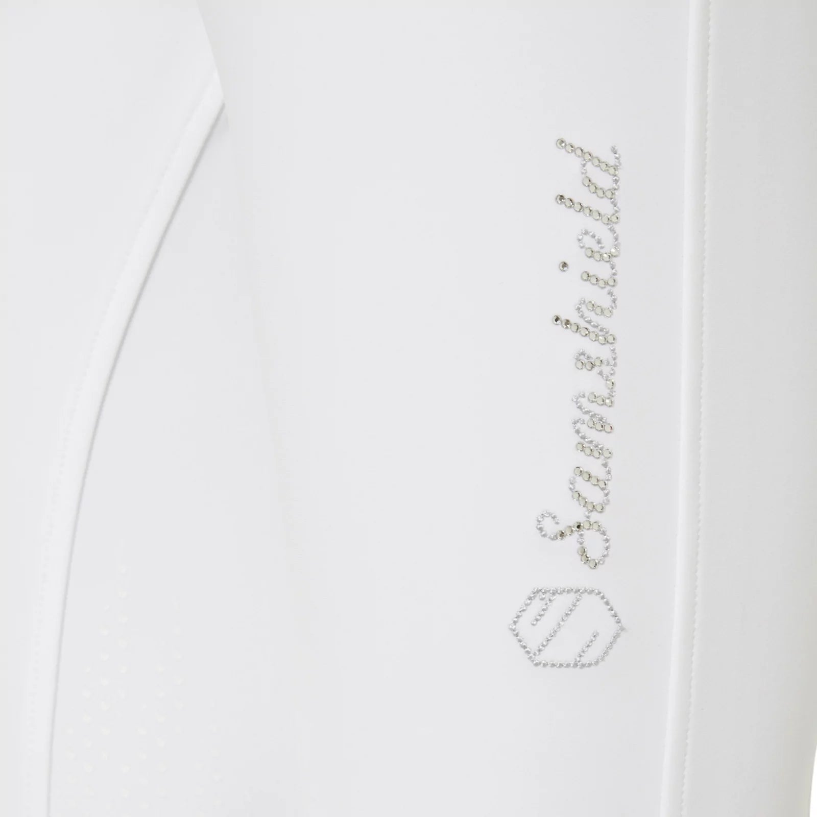 The Celeste Breeches feature a high waist with flattering V design and full seam seat on the reverse and Swarovski Crystal Fabric detailing on the pockets and reverse. The four way stretch fabric allows for optimum freedom of movement, whilst the six layer grip gives excellent adherance to the saddle. These breeches are finished with an embroidery and crystal Samshield logo on the thigh. The fabric is UV protected, maintaining colour quality but also protecting the rider's skin and is EPD certified, making it an environmentally friendly choice. Easy care, machine washable at 30'C