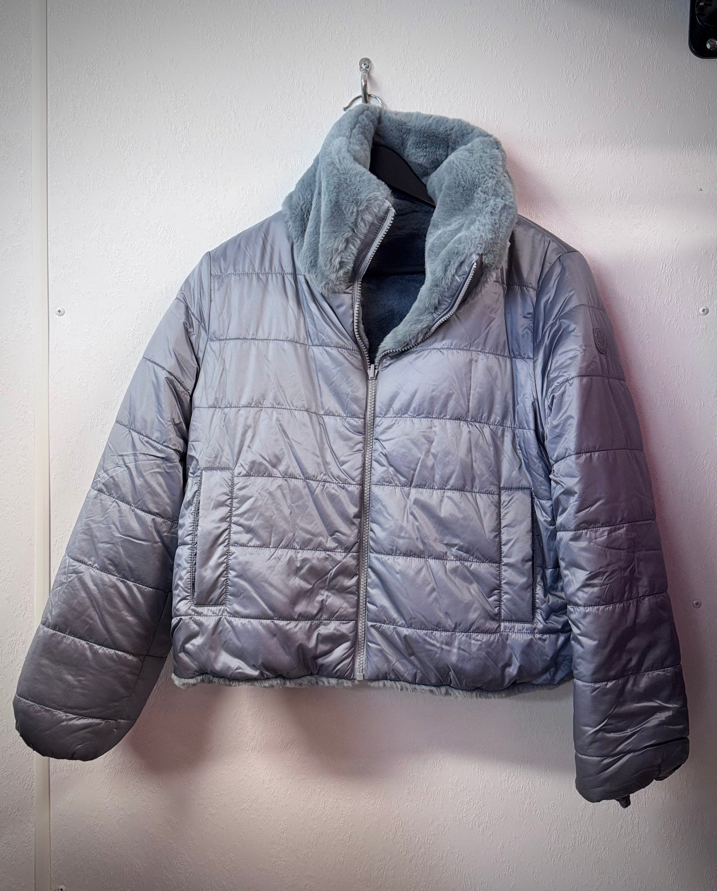 Made from faux fur, the Jeon jacket lets you display your wild side while still respecting nature. The design features details like a high neck, zipped front and an elasticated hem. A reversible design, it has a quilted finish visible on one side.