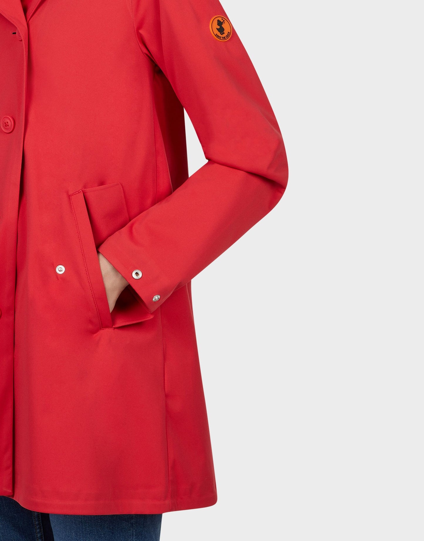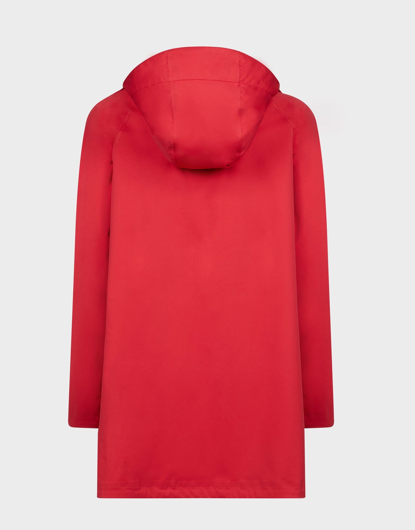 Bi-material hooded jacket: made of BARK and FEEL. Practical and compact for rain or shine.
