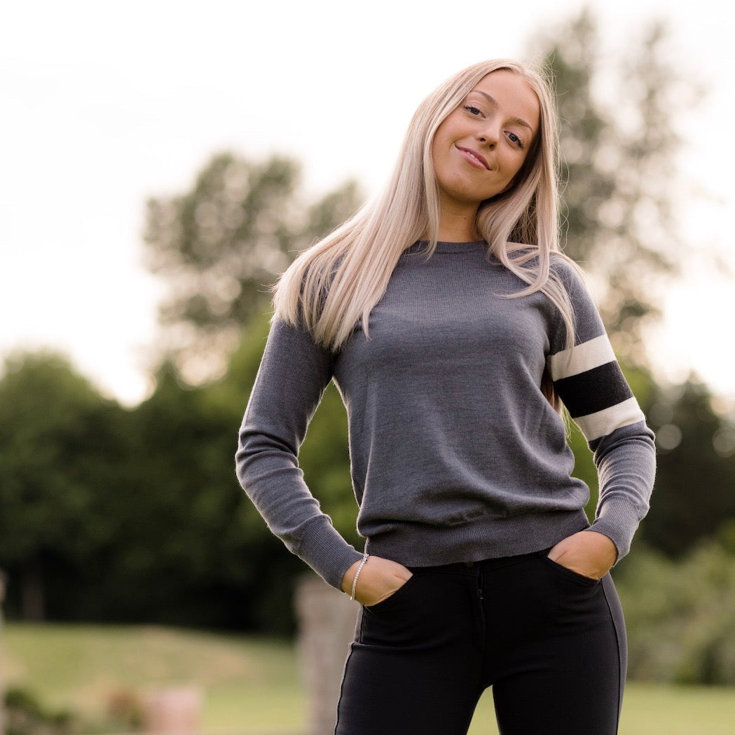 This crewneck will soon be your wardrobe staple. The Armband Sweater is light-weight, breathable and adds a pop of colour to any show day outfit.