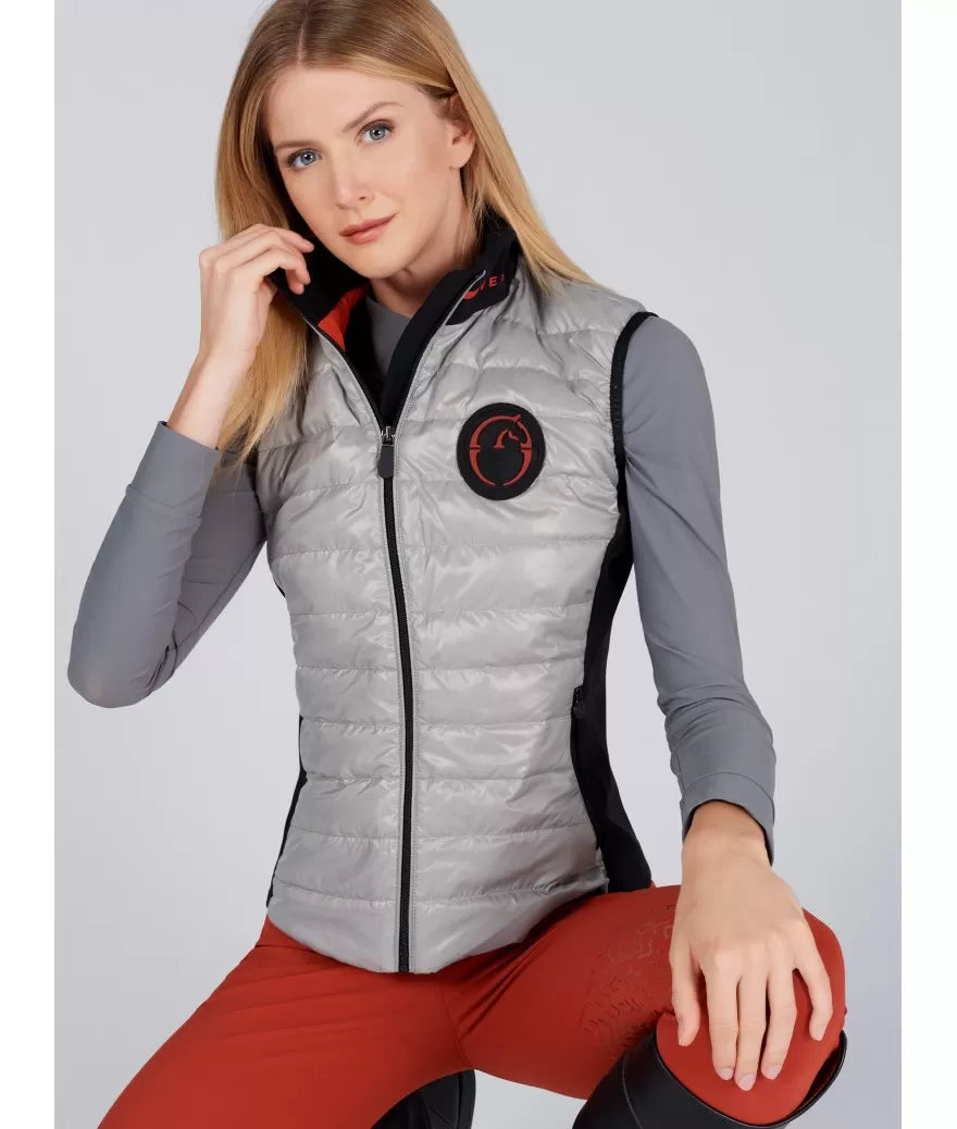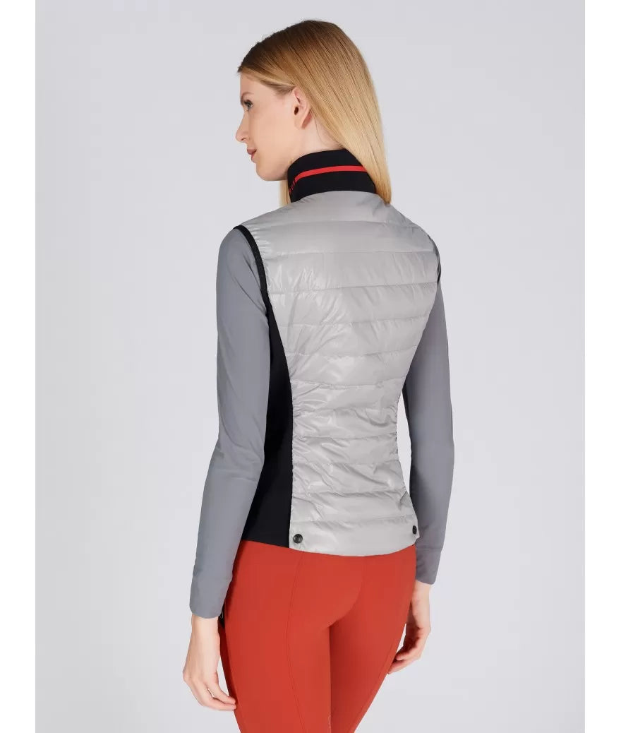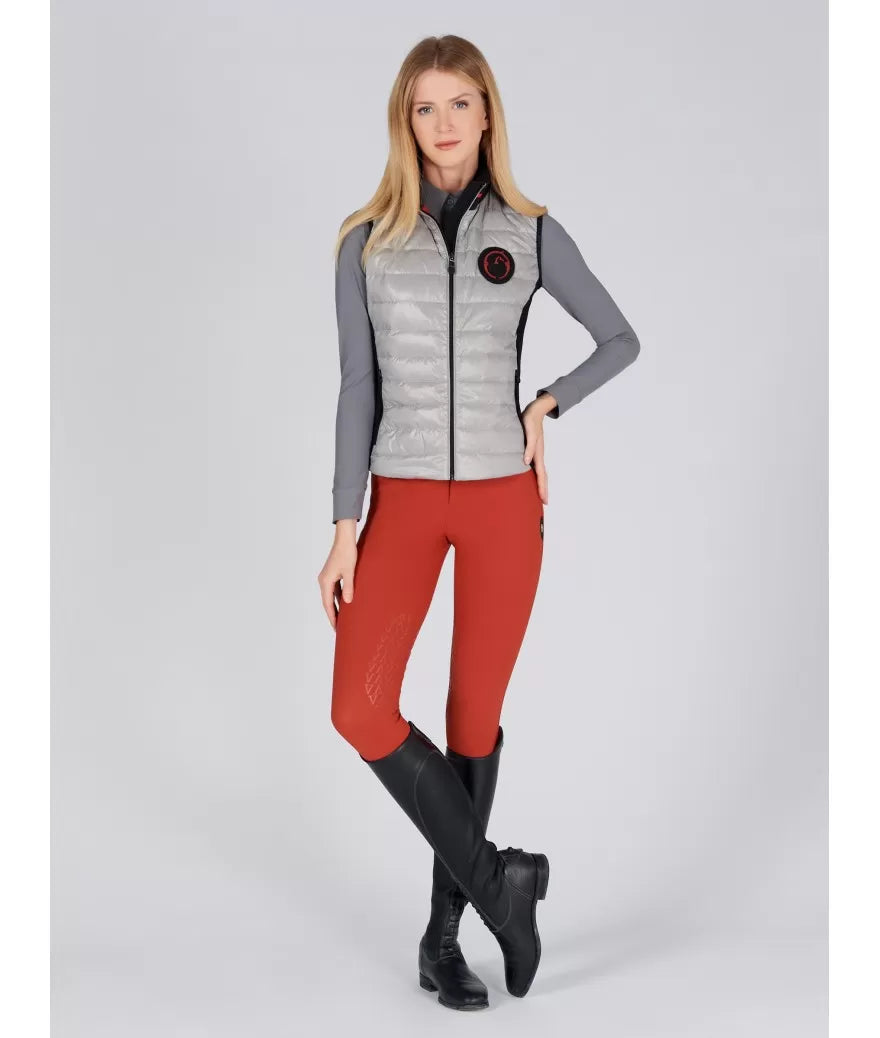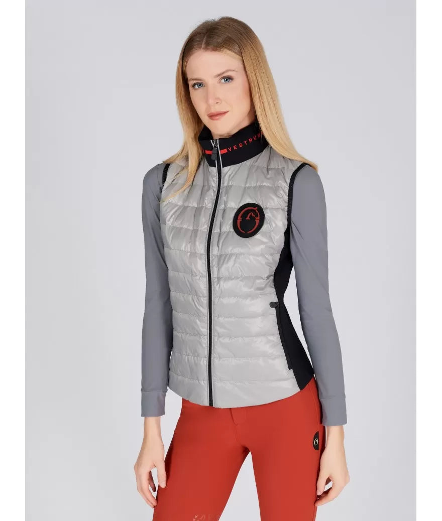 Women’s water repellent vest with contrasting mesh fabric on the sides for greater comfort and a perfect fit. High collar and fabric designed to protect from the wind. Front logo patch and contrasting Vestrum writing on the neck. Side pockets with zips.