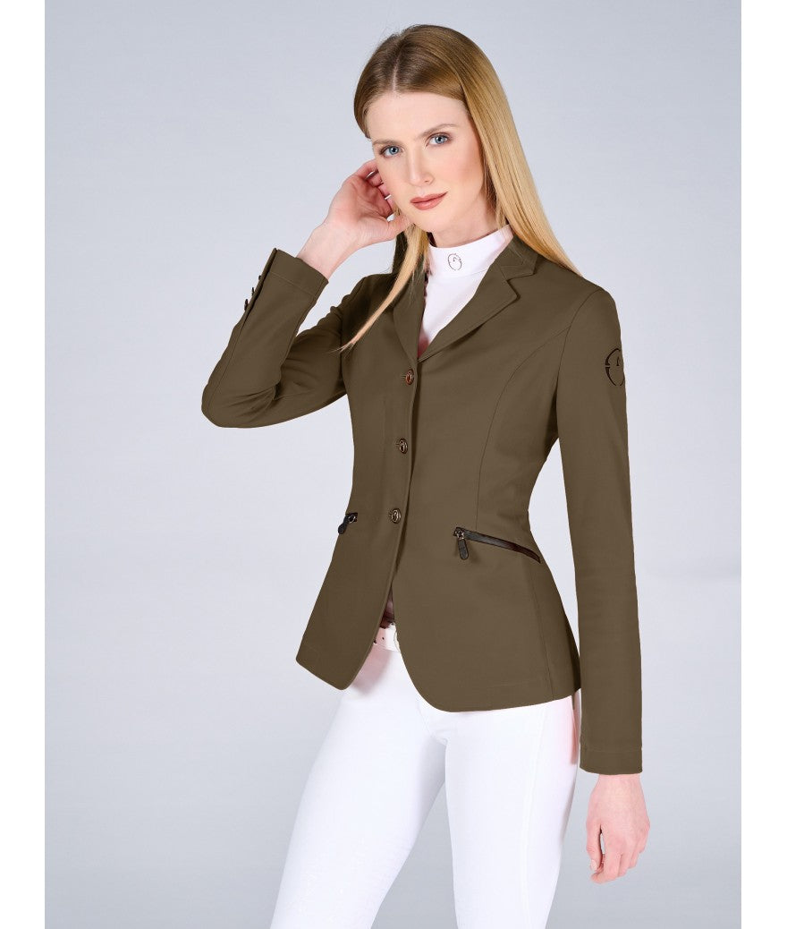 Unlined women’s competition jacket Montevideo. The knitted and very strong fabric makes it perfect for competitions. At the same time, it’s soft enough to guarantee freedom of movement for every body shape, including curvy ones. Contrast alcantara details. Laser logo on shoulder.