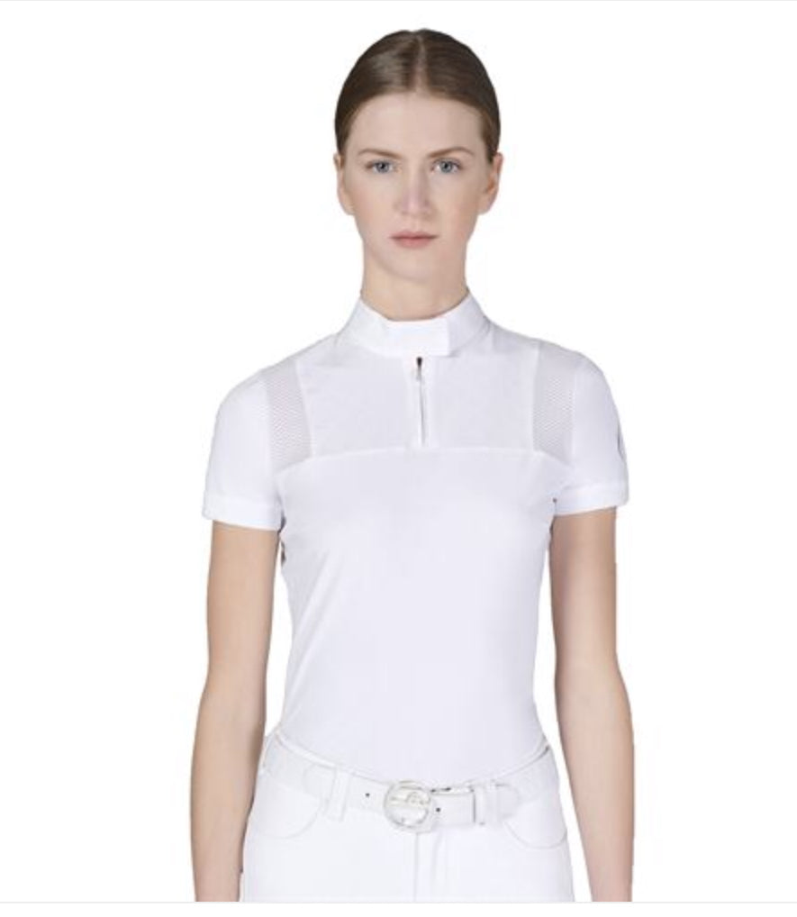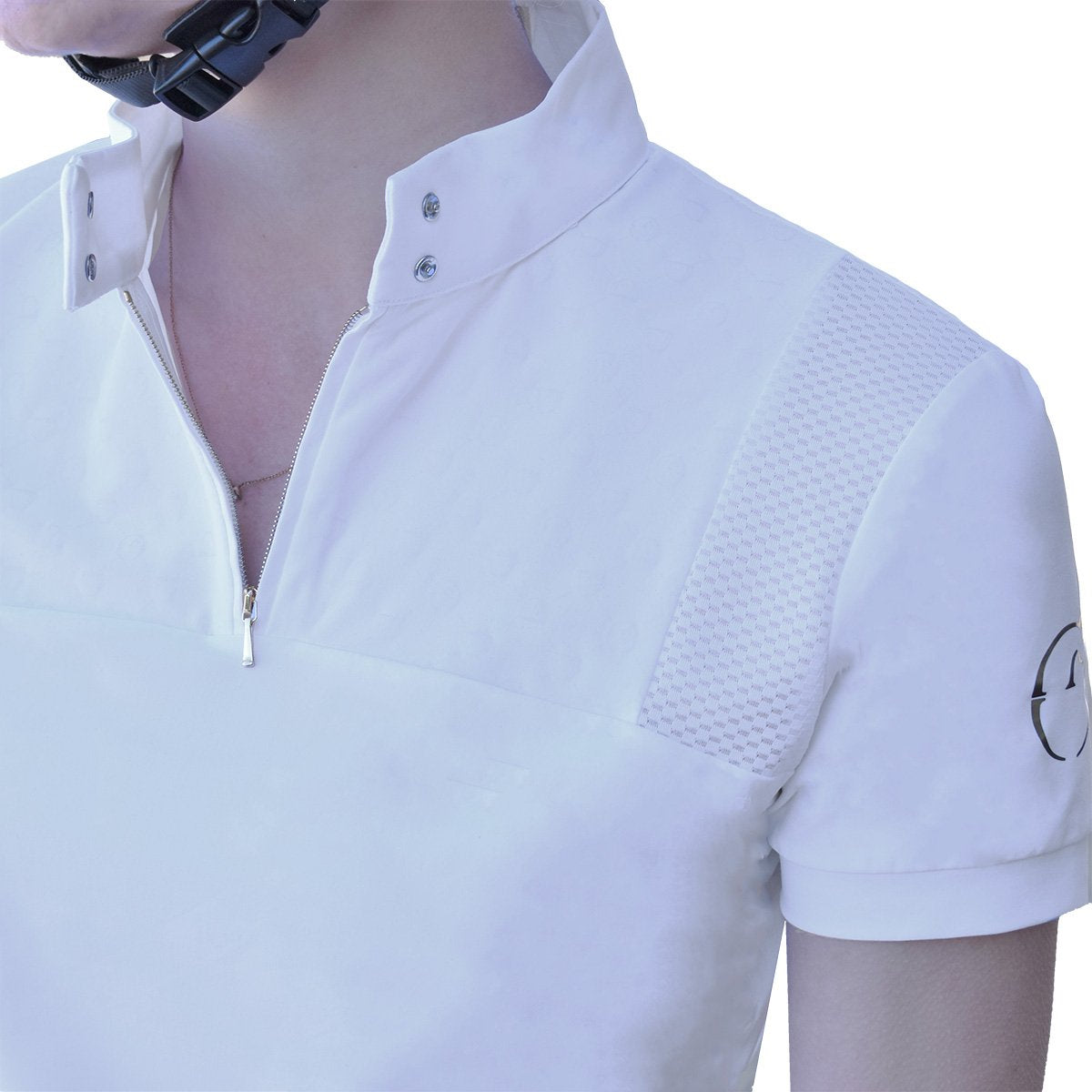 Marrying innovation with classic, show-ring polish, this Vestrum Ladies’ Southampton Short Sleeve Show Shirt keeps you comfortable in competition. It is made in Italy from high-quality stretch fabric. Mesh inserts add eye appeal in the warmup ring as they increase cooling airflow, but disappear under your show jacket.