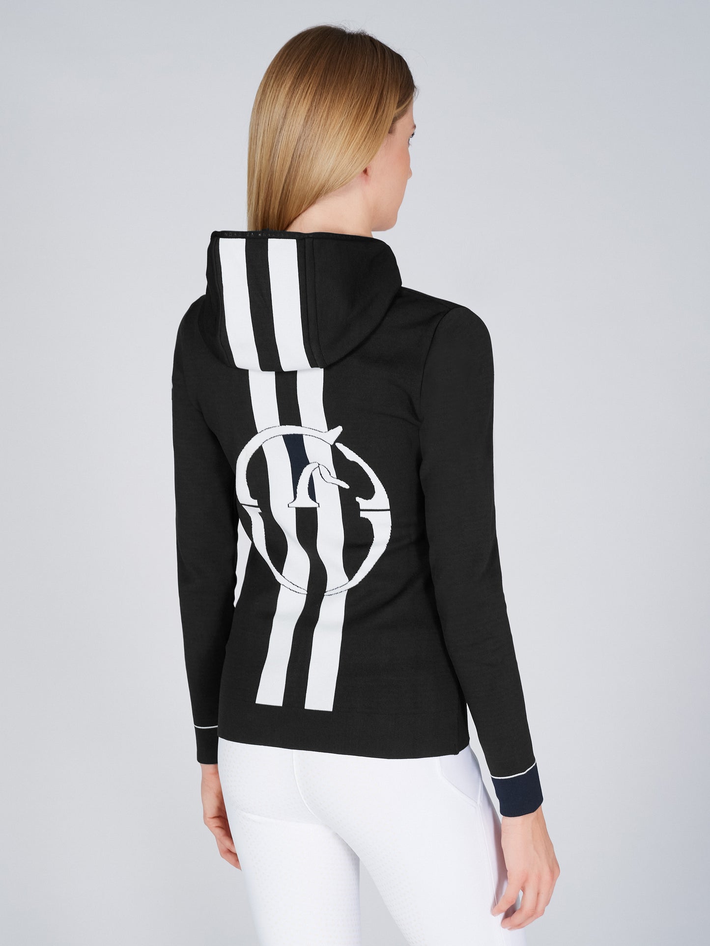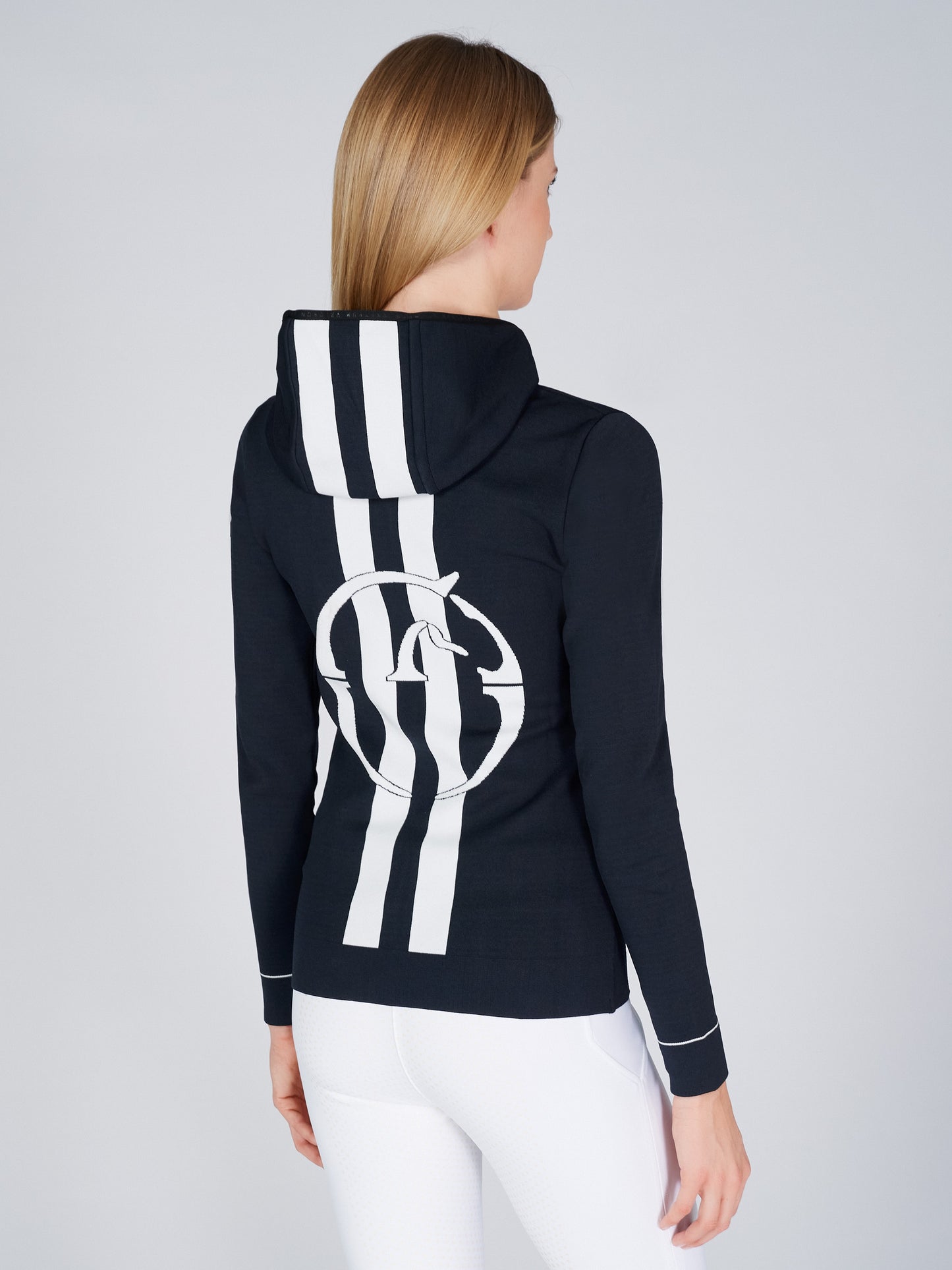 Valloire is a women’s technical top, it’s made of 100% polypropylene, an high tech yarn designed to achieve the highest athletic performance. Light weight and comfortable, it assits your movements with the maximum elasticity. Excellent thermal regulation and breathability. Hood with customized border. Taped full zip to easily open it and take it off. Printed Vestrum logo on the back and two vertical stripes in contrast color.