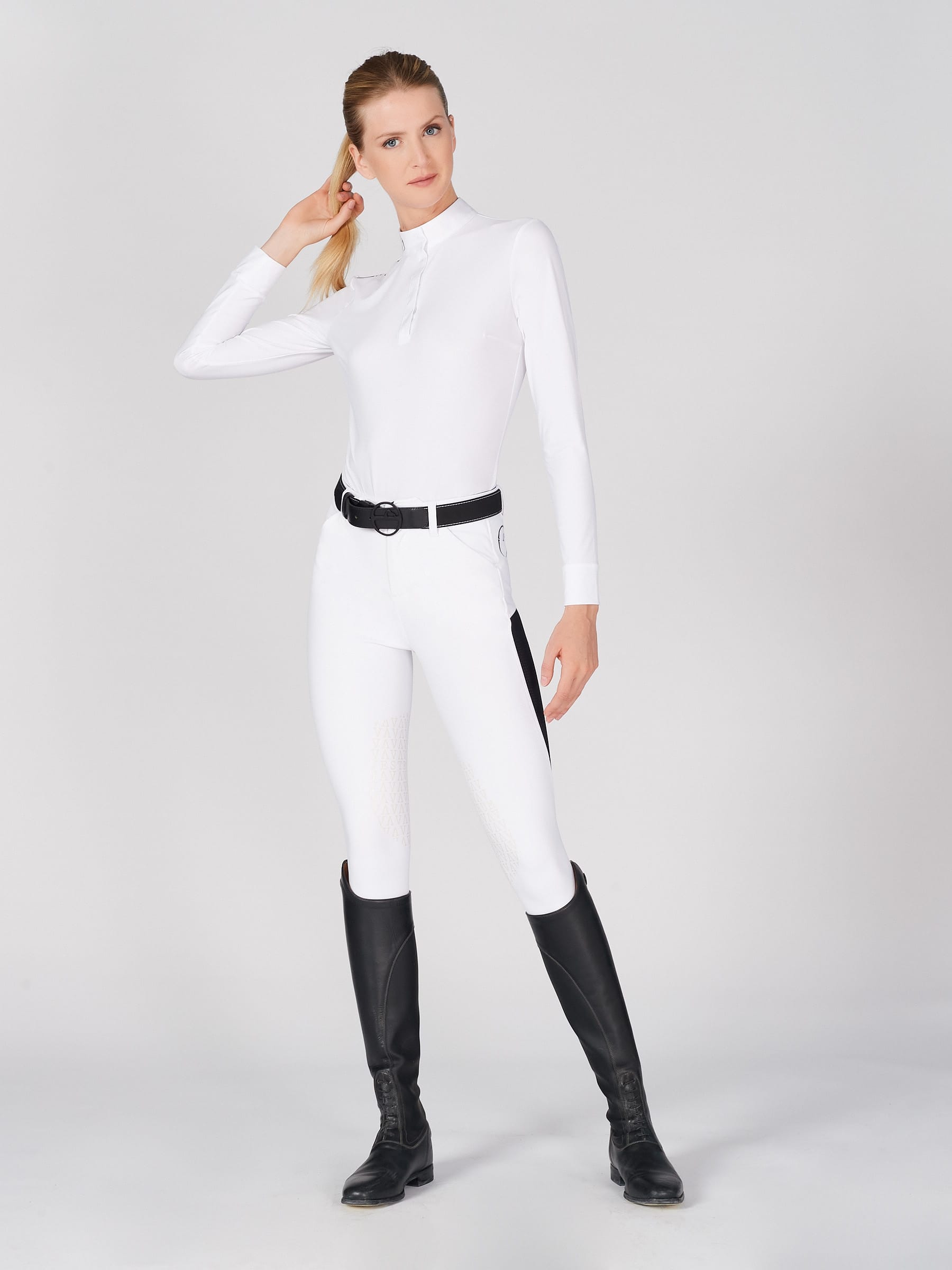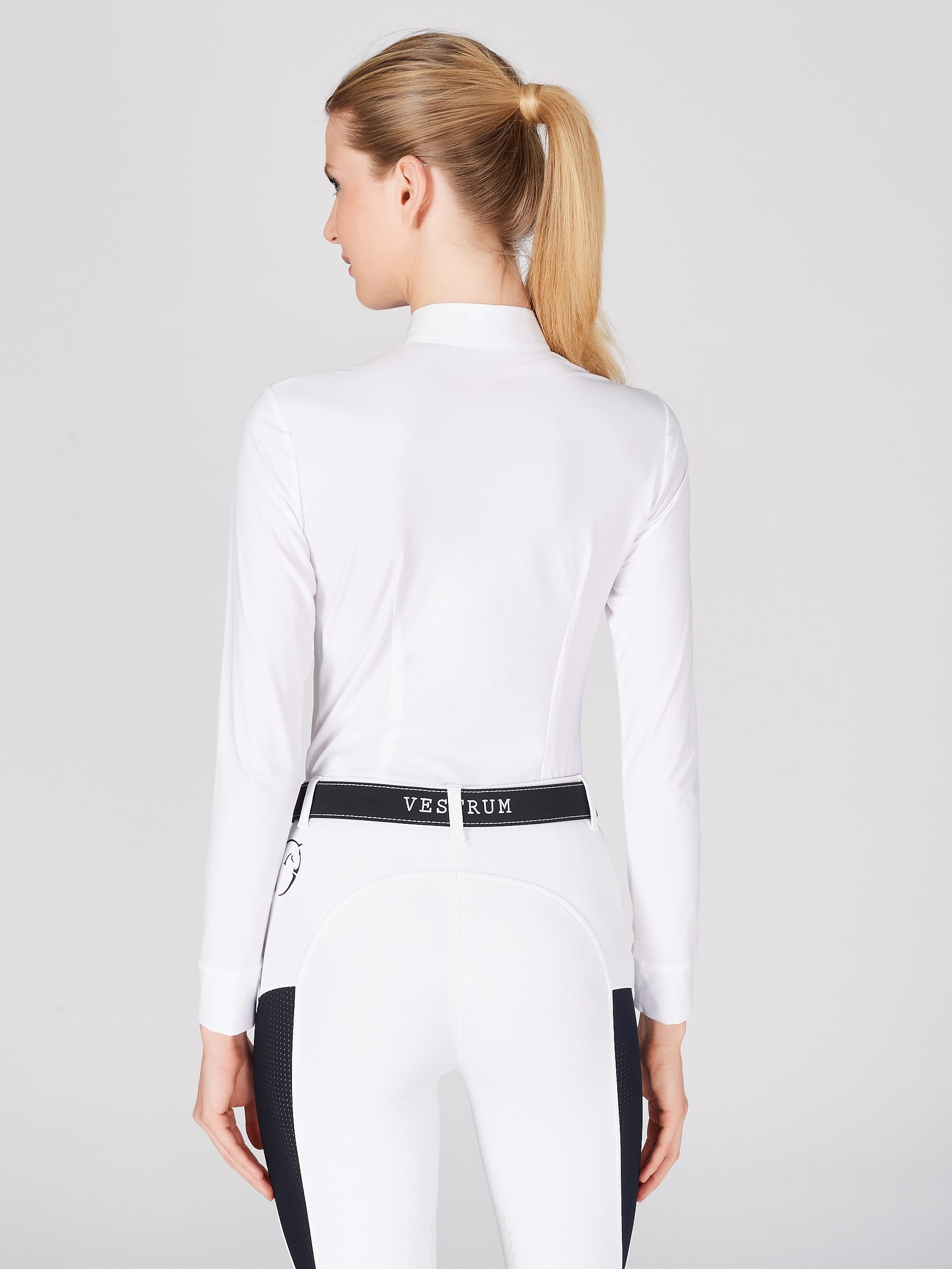 Women’s competition shirt Valledoria is designed for competition in any weather conditions with the best comfort. Light and breathable bistretch materials, comfortable fit. Long sleeve, stand up collar in popeline with printed logo. Front closure with snapbuttons