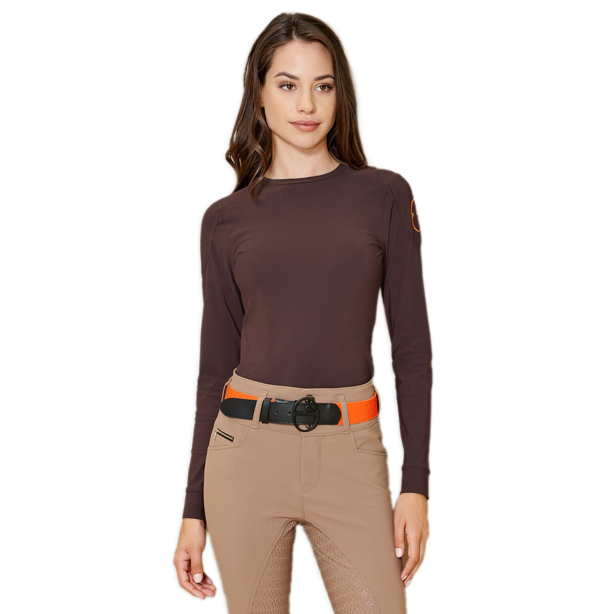 Classic crewneck with embroidered branding at the shoulder. Technical bi-stretch fabric gives clean look with moisture wicking and sun protection without limiting freedom of movement. Long sleeves and a crew neck to keep your skin out of the sun and keep you cool while training.
